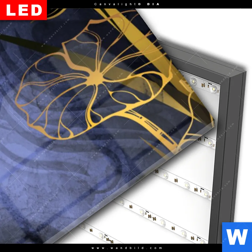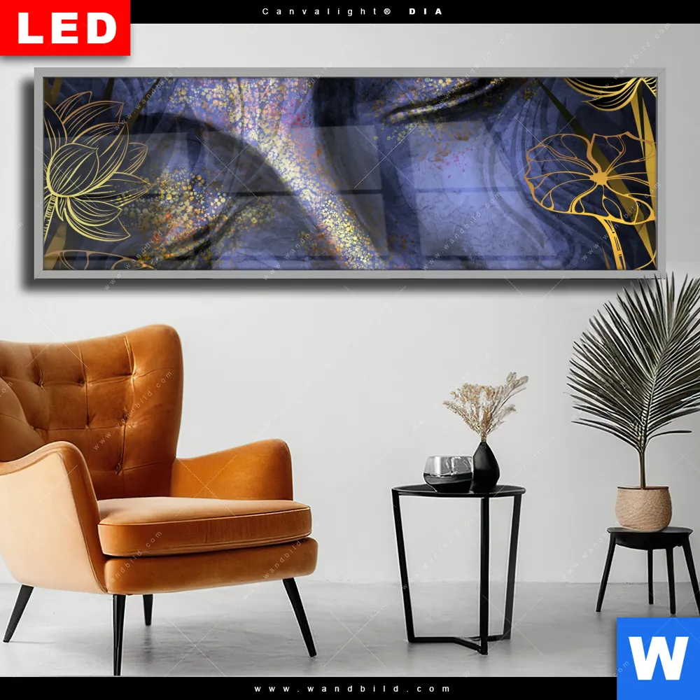 Wechselmotiv Acrylglas Canvalight® DIA | Buddha in Gold & Blau | Panorama
