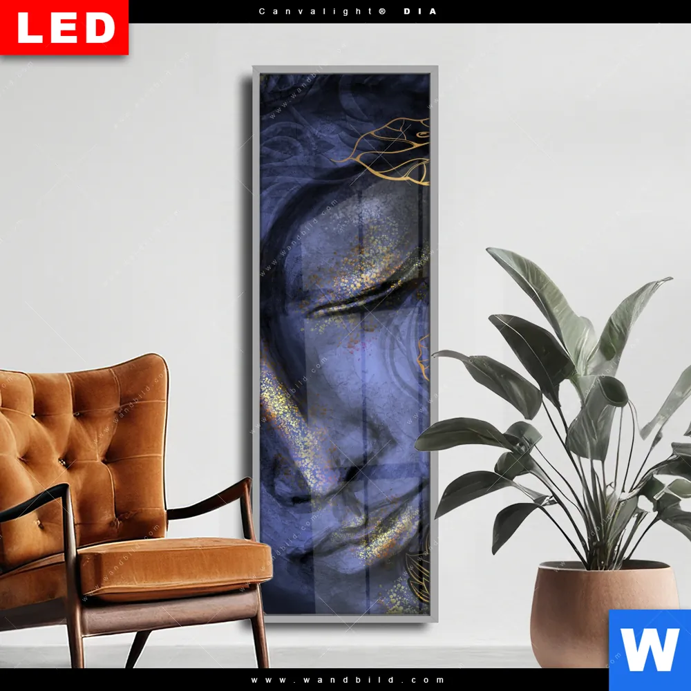 Wechselmotiv Acrylglas Canvalight® DIA | Buddha in Gold & Blau | Schmal