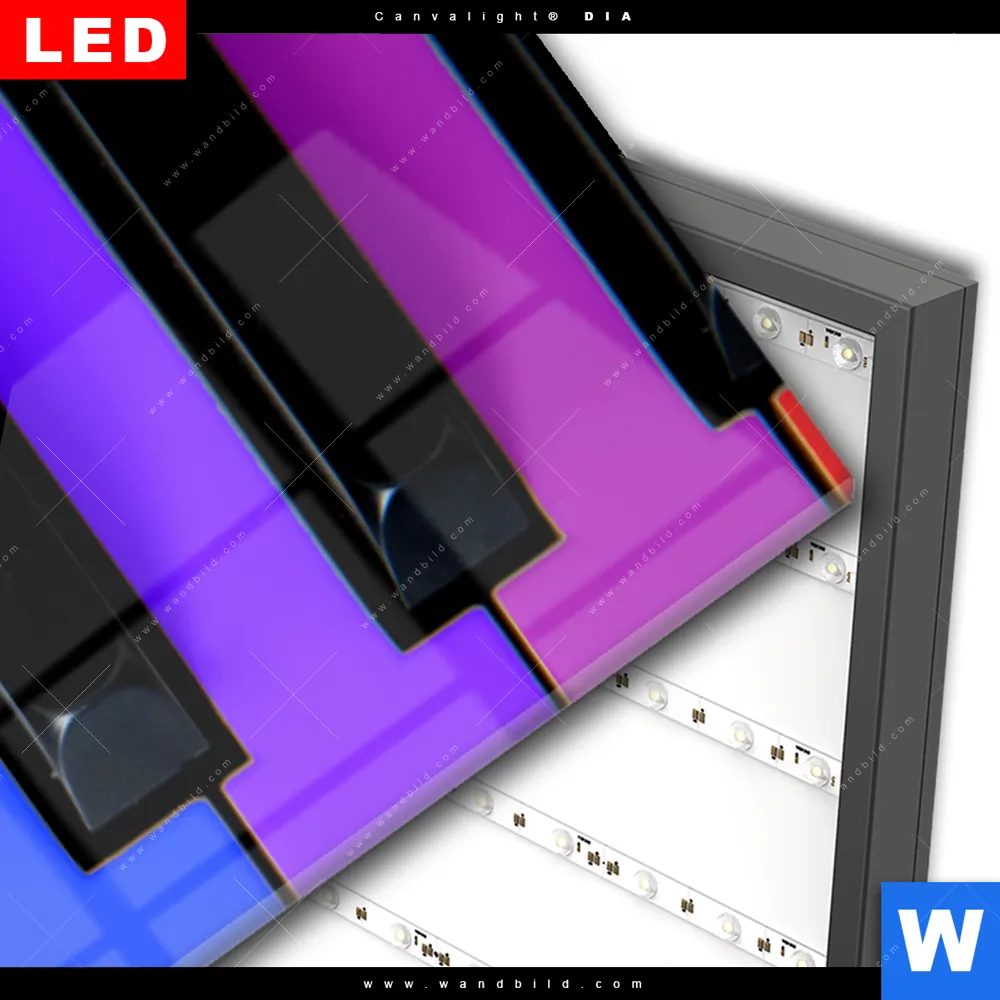 Wechselmotiv Acrylglas Canvalight® DIA | Bunte Klaviertasten | Panorama