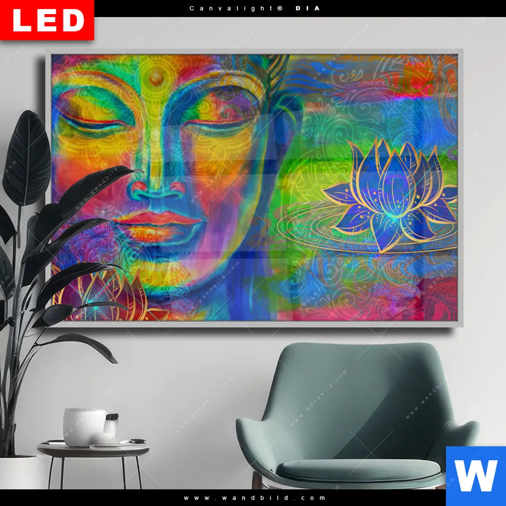 Wechselmotiv Acrylglas Canvalight® DIA | Bunter Buddha No.2 | Querformat