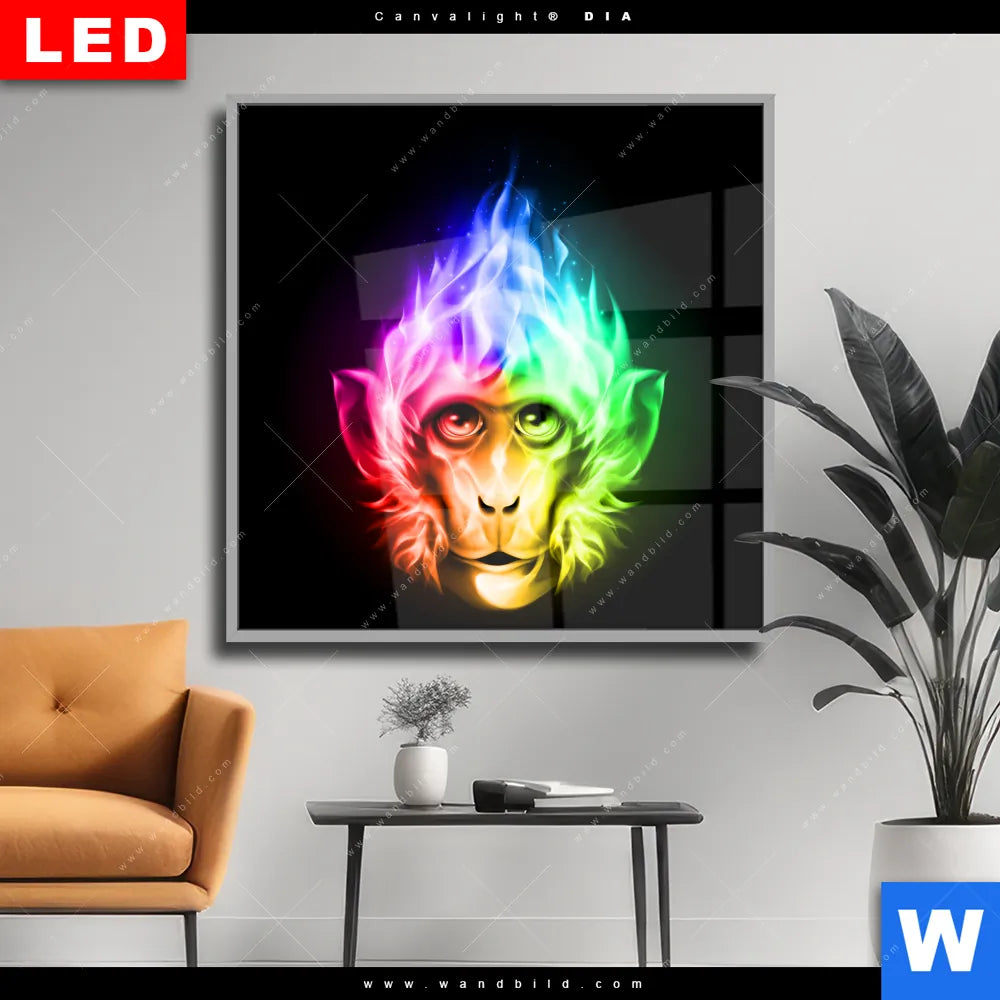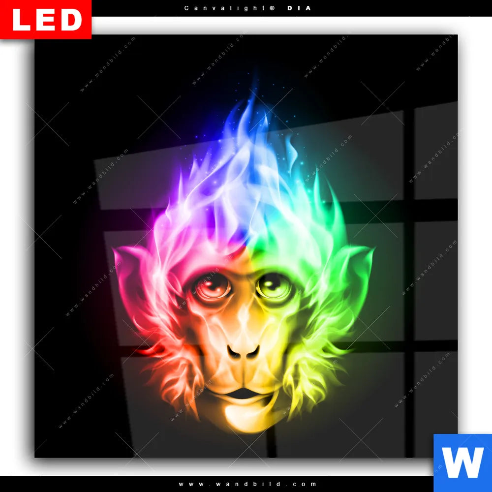 Wechselmotiv Acrylglas Canvalight® DIA | Bunter Feuer-Affe | Quadrat