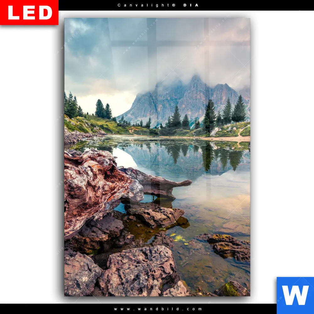 Wechselmotiv Acrylglas Canvalight® DIA | Dramatischer Morgenblick am See | Hochformat