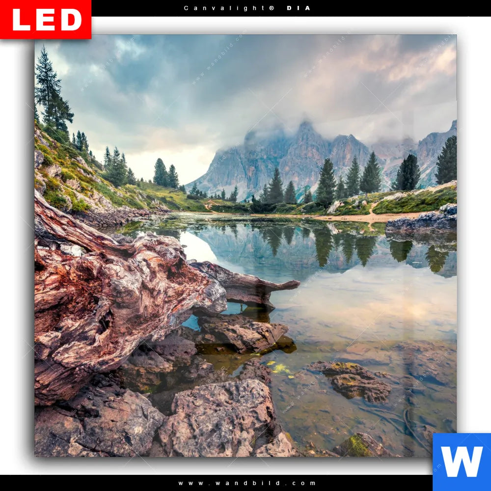 Wechselmotiv Acrylglas Canvalight® DIA | Dramatischer Morgenblick am See | Quadrat