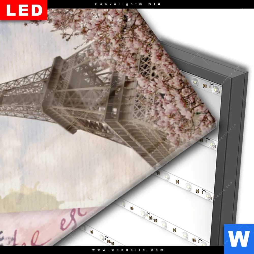 Wechselmotiv Acrylglas Canvalight® DIA | Eifelturm & Rosen | Panorama