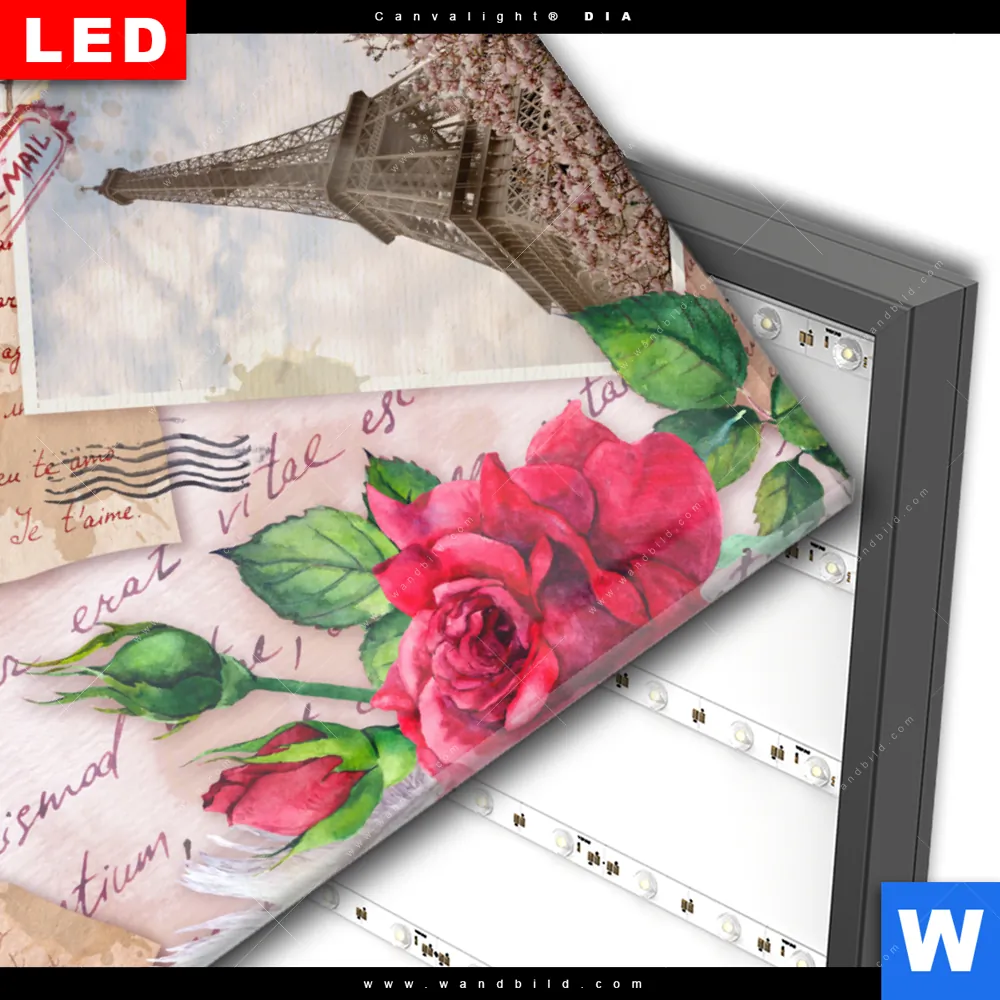 Wechselmotiv Acrylglas Canvalight® DIA | Eifelturm & Rosen | Querformat