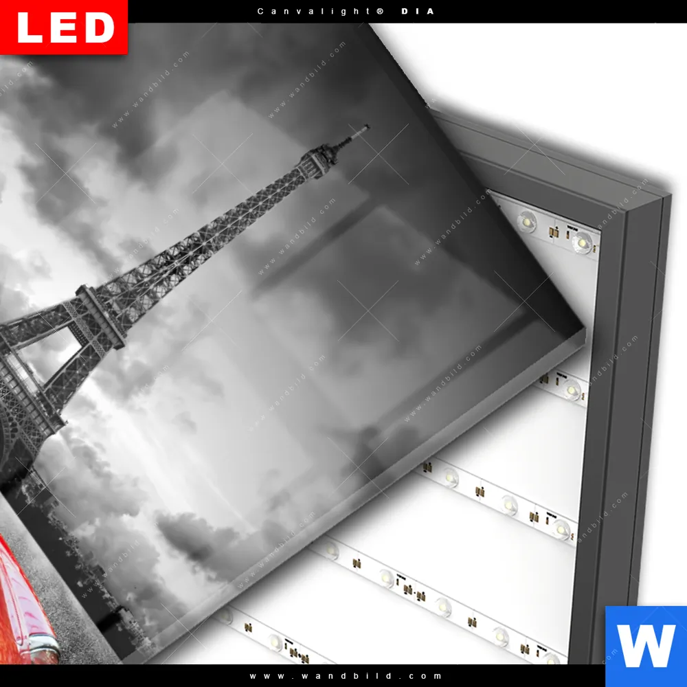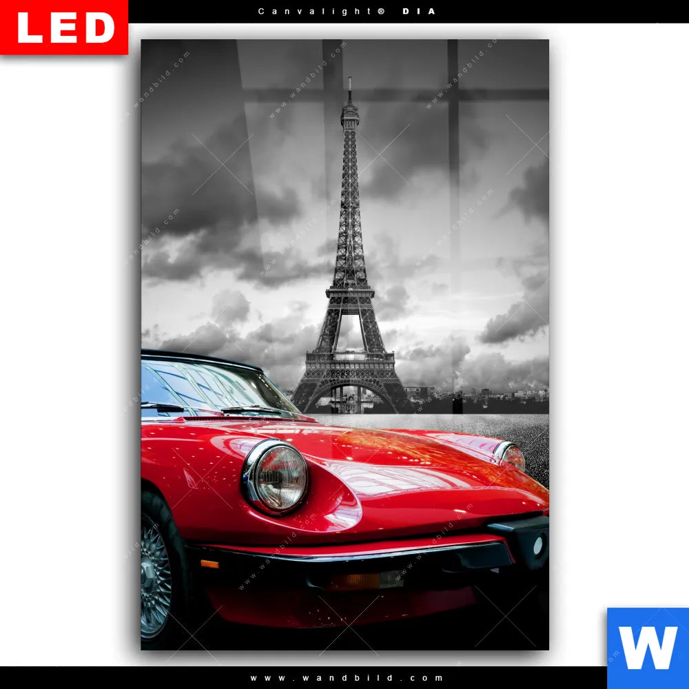 Wechselmotiv Acrylglas Canvalight® DIA | Eiffelturm & Rotes Auto | Hochformat