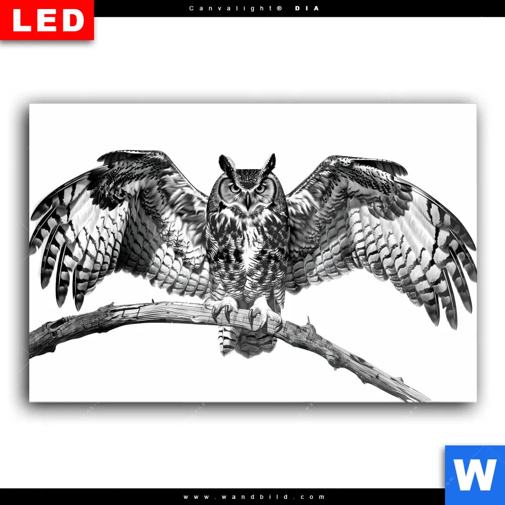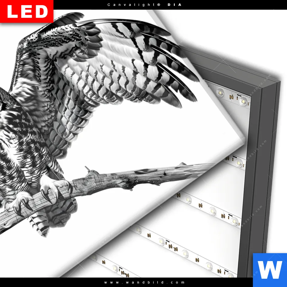Wechselmotiv Acrylglas Canvalight® DIA | Eule auf Ast | Querformat