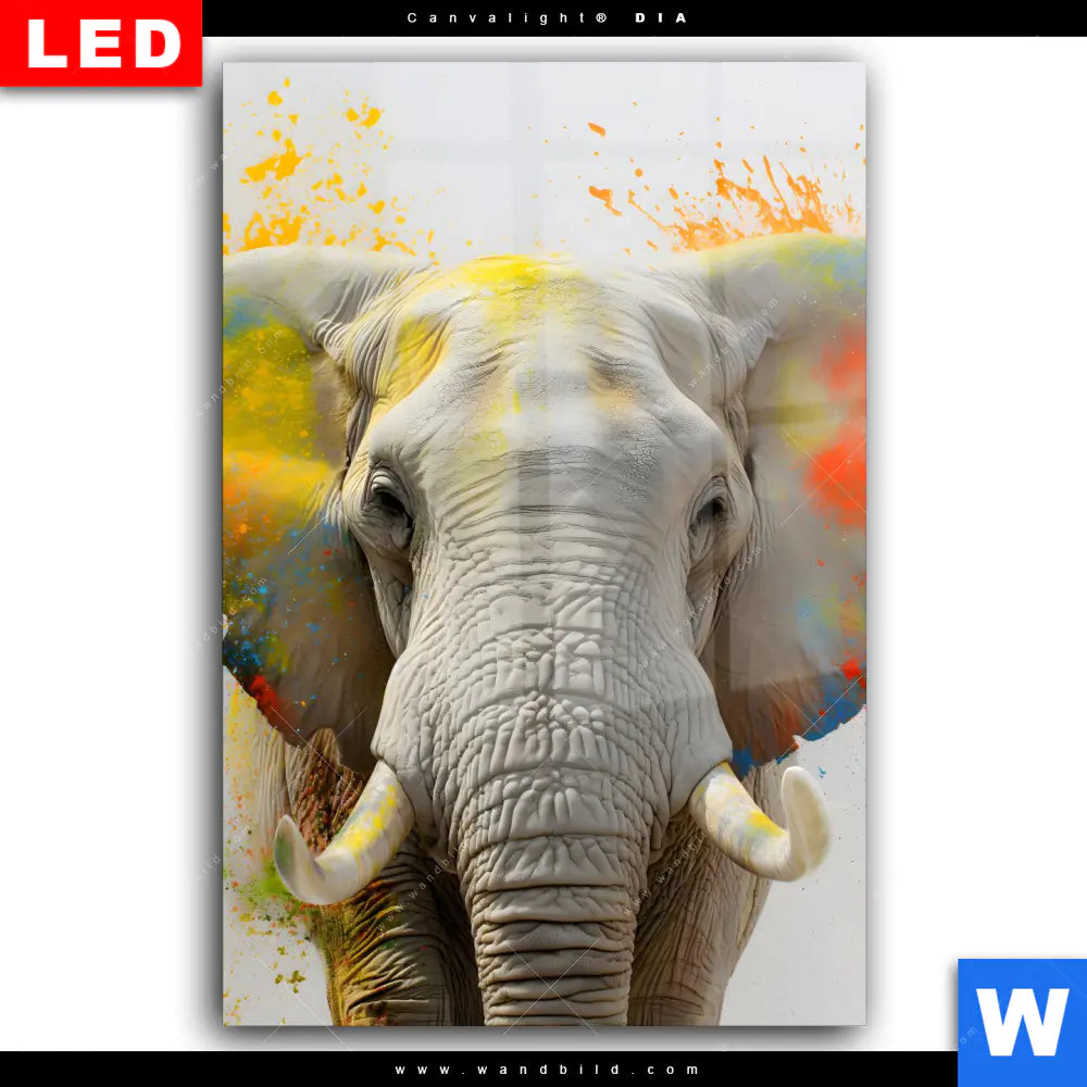 Wechselmotiv Acrylglas Canvalight® DIA | Farbenexplosion mit Elefant | Hochformat