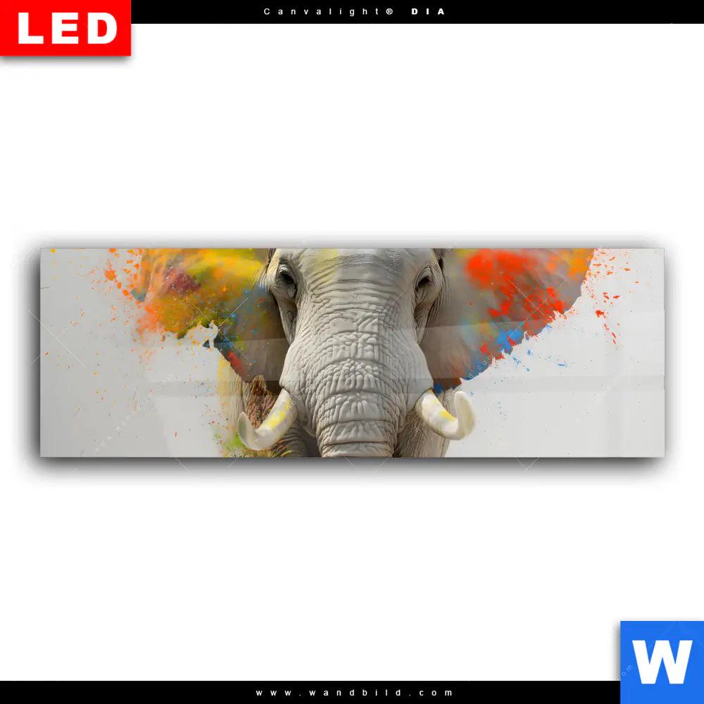 Wechselmotiv Acrylglas Canvalight® DIA | Farbenexplosion mit Elefant | Panorama