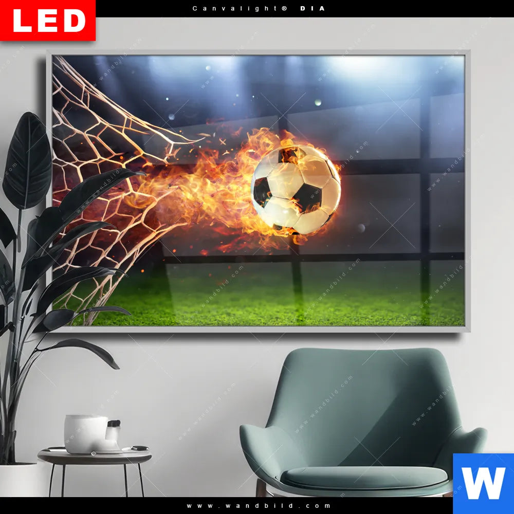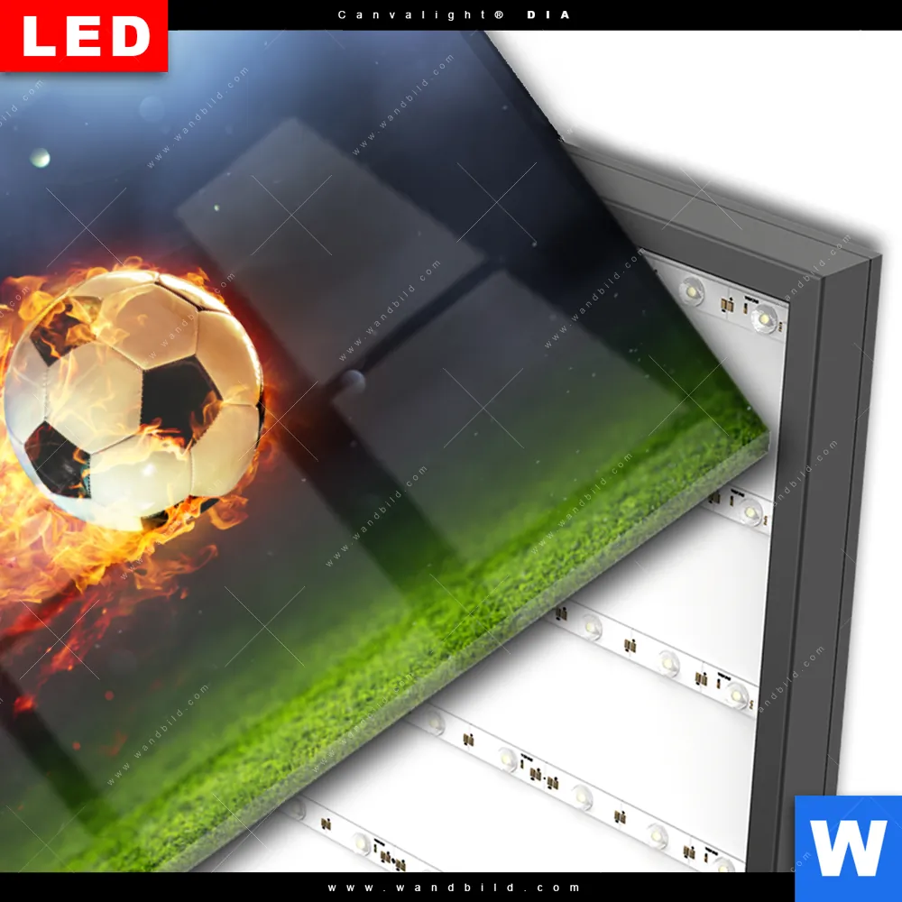 Wechselmotiv Acrylglas Canvalight® DIA | Feuriger Fussball | Querformat