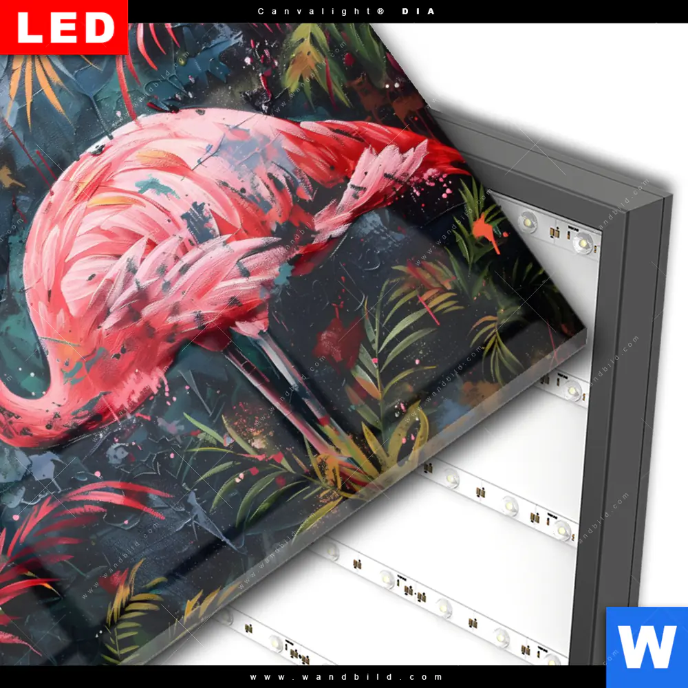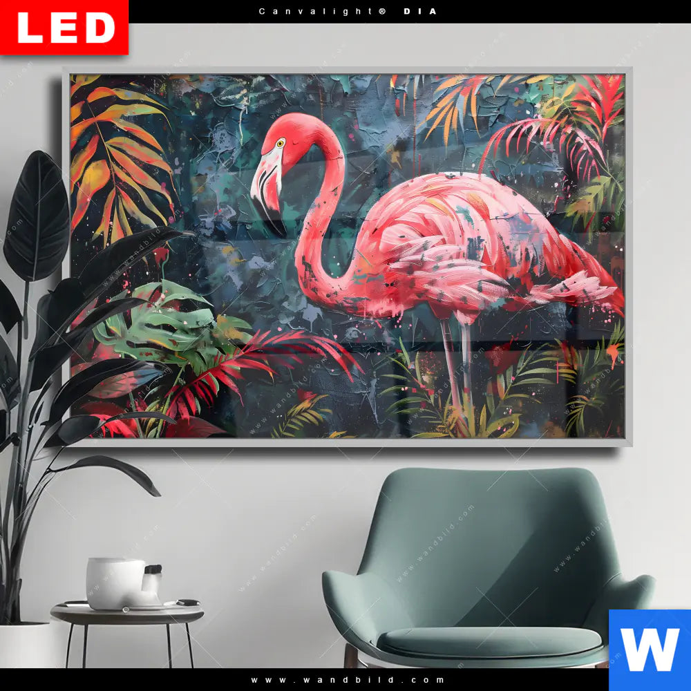 Wechselmotiv Acrylglas Canvalight® DIA | Flamingo - Dschungel Eleganz | Querformat