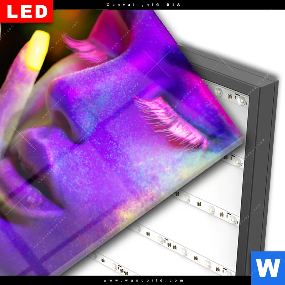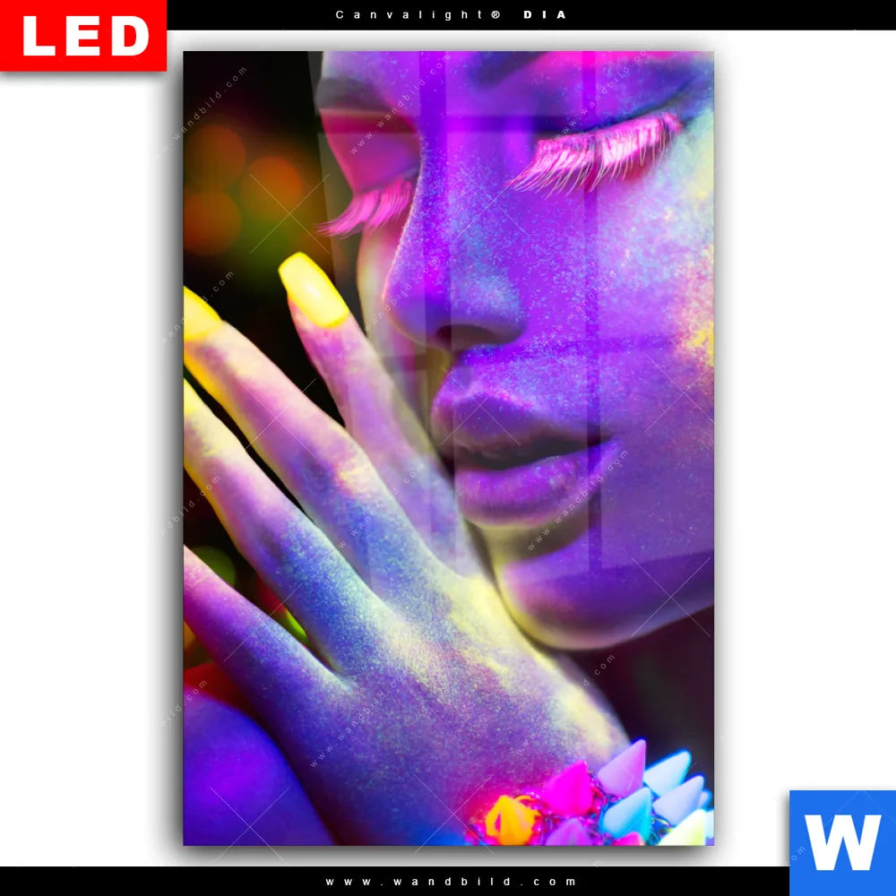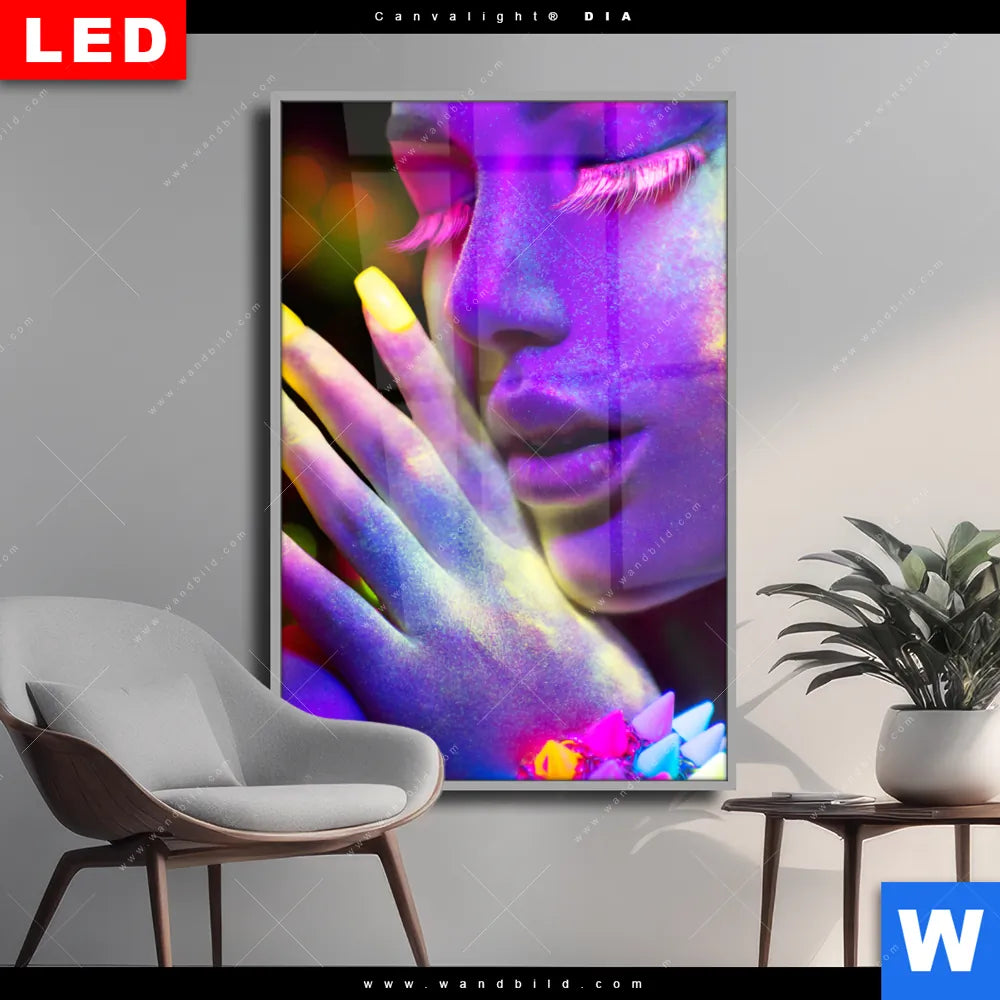 Wechselmotiv Acrylglas Canvalight® DIA | Frau im Neonlicht | Hochformat