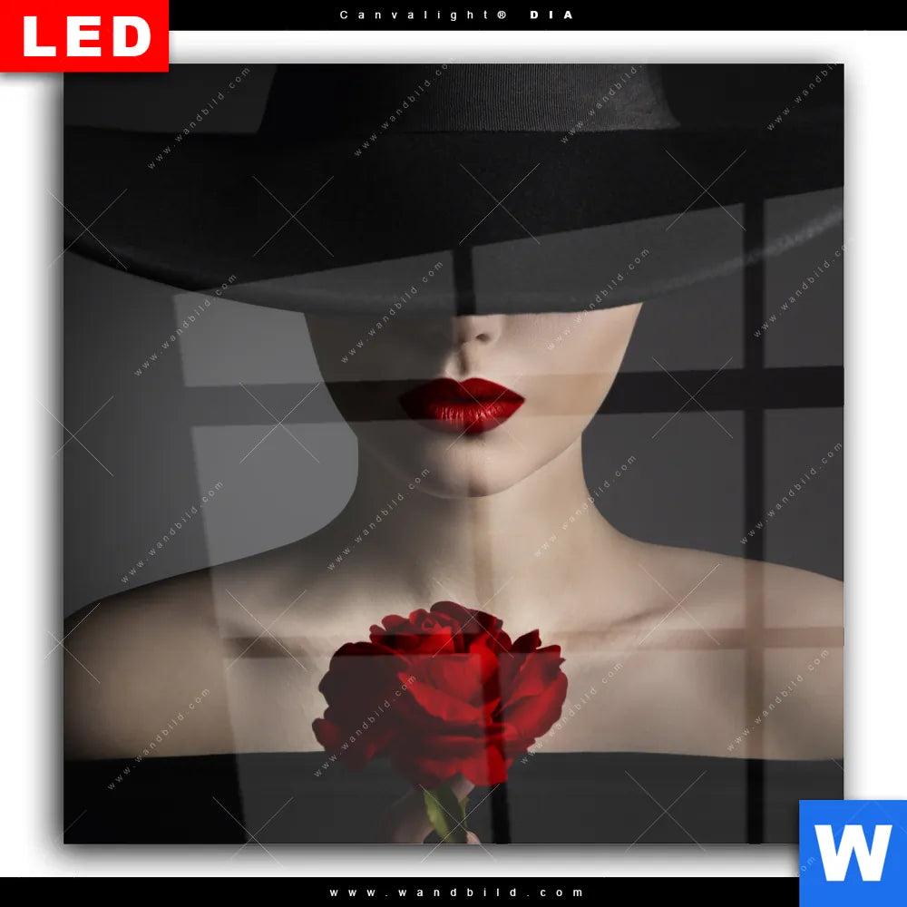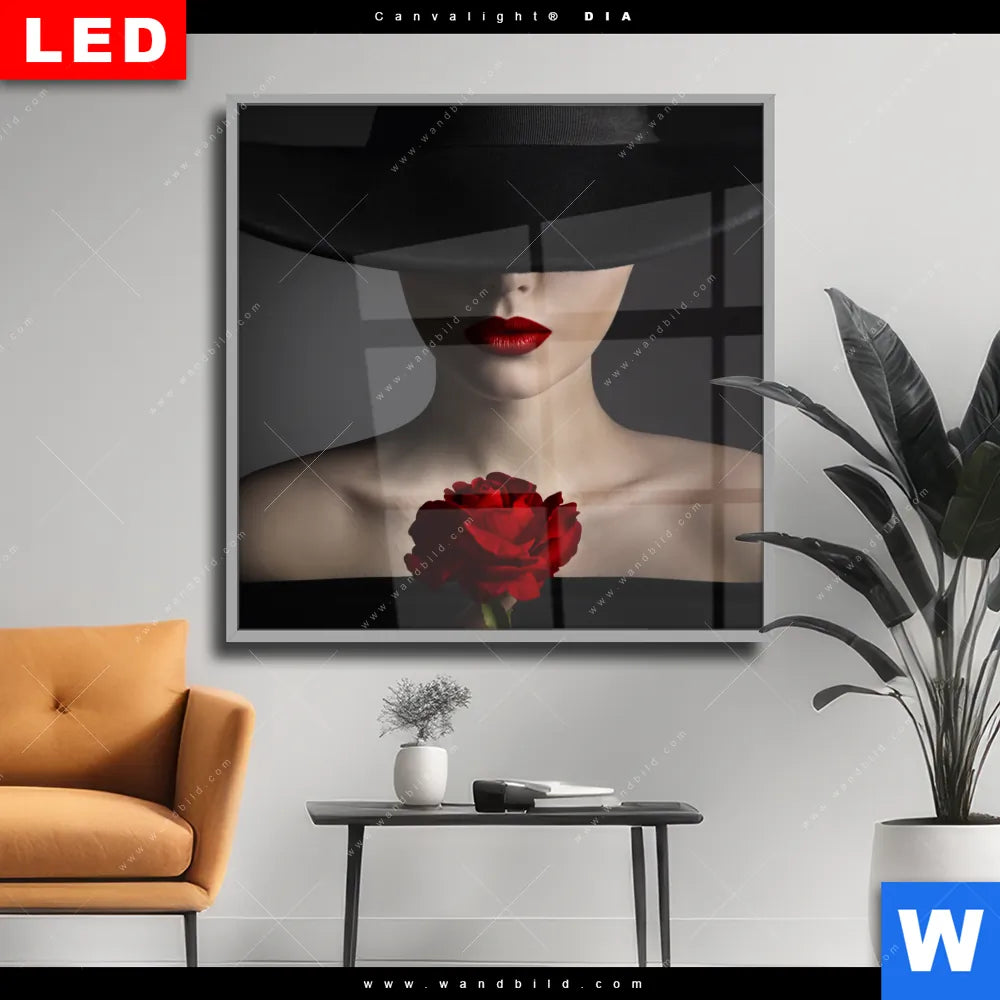 Wechselmotiv Acrylglas Canvalight® DIA | Frau mit Hut & Rose | Quadrat