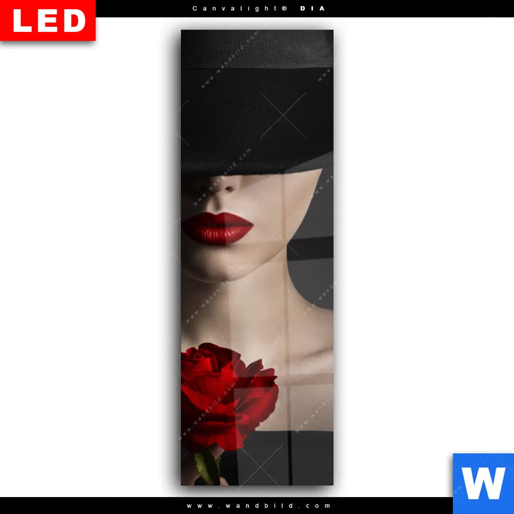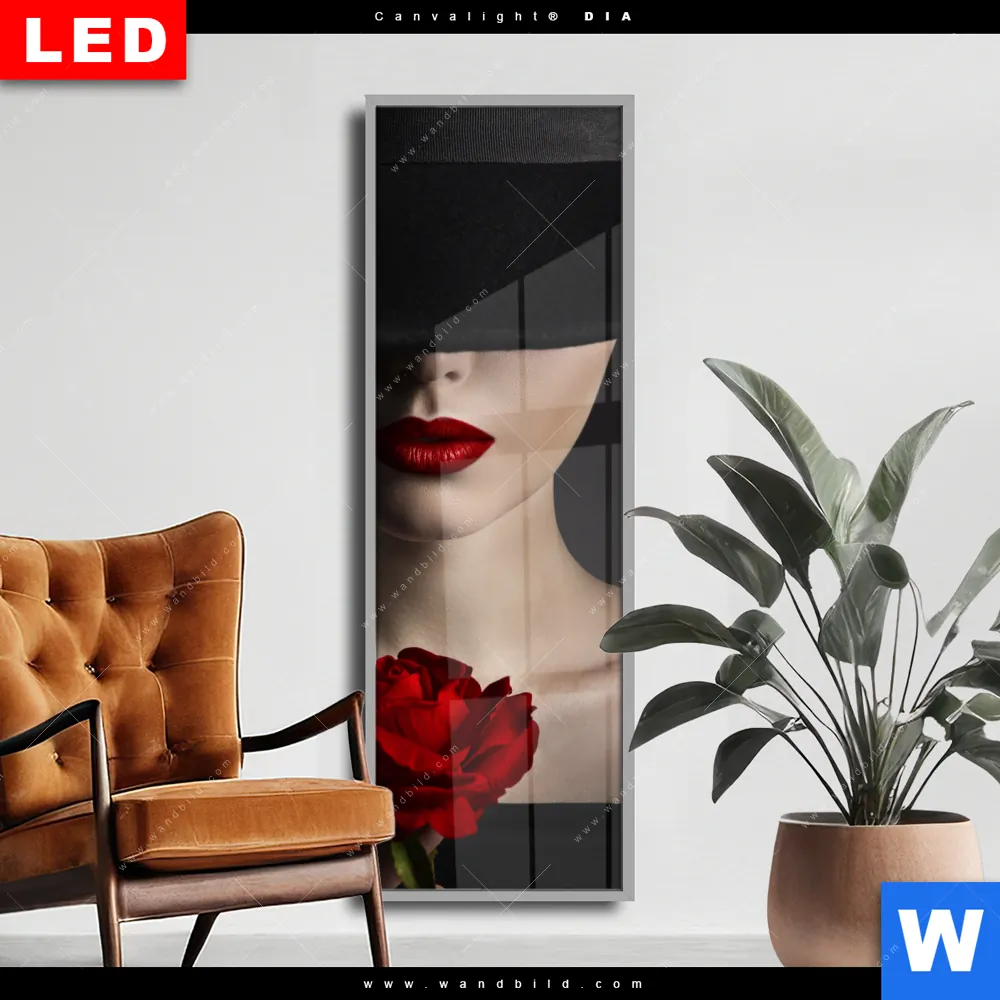 Wechselmotiv Acrylglas Canvalight® DIA | Frau mit Hut & Rose | Schmal