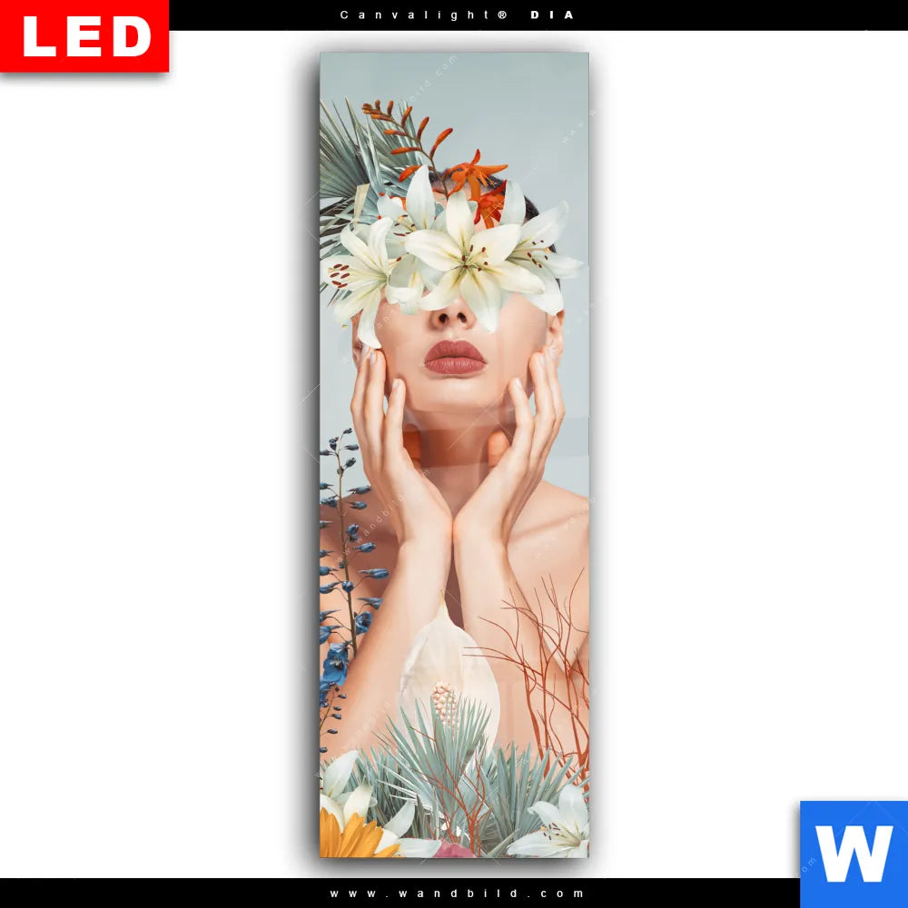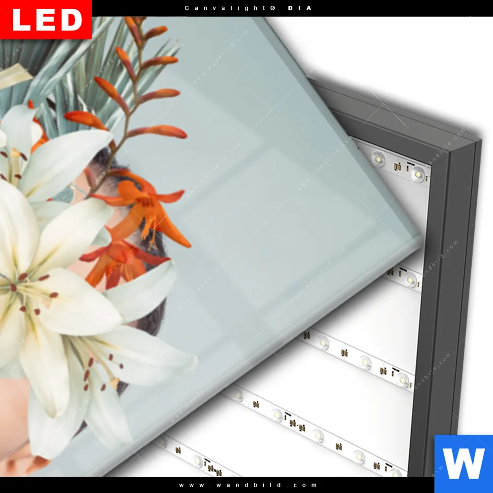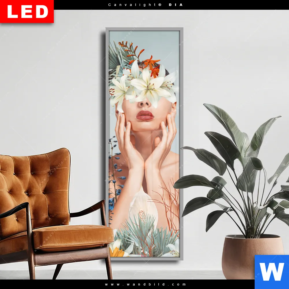 Wechselmotiv Acrylglas Canvalight® DIA | Frauenportrait mit Blumen | Schmal
