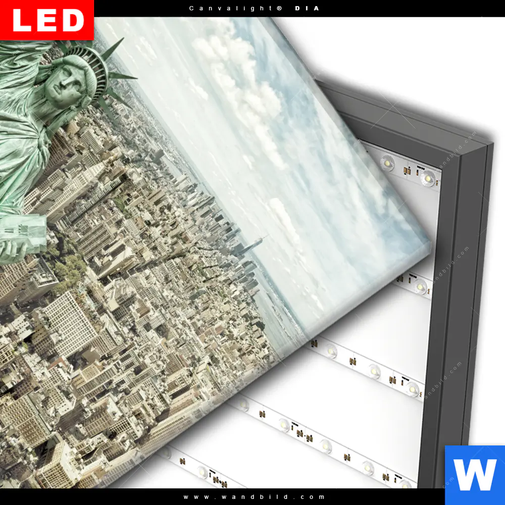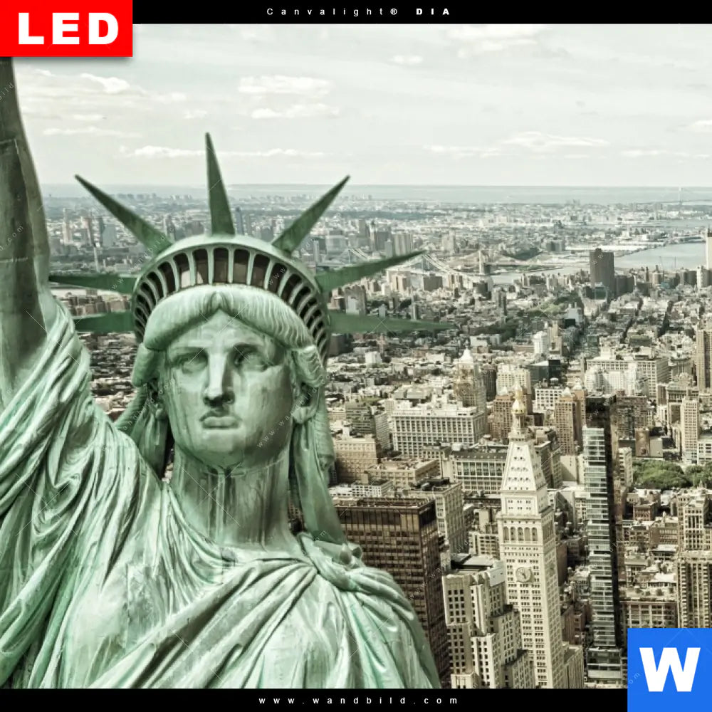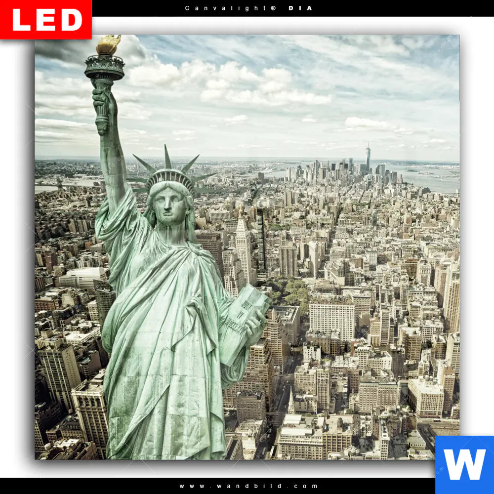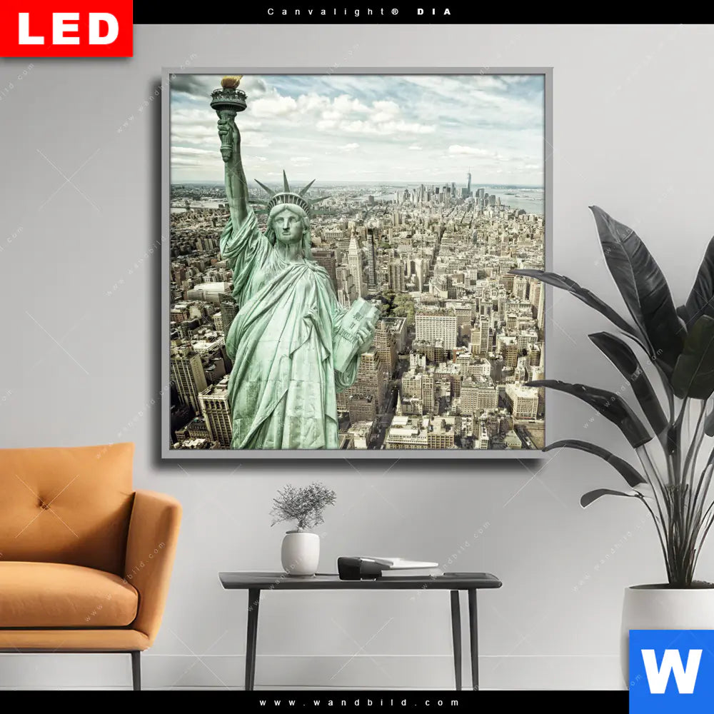 Wechselmotiv Acrylglas Canvalight® DIA | Freiheit über Manhattan | Quadrat