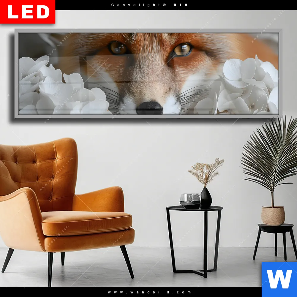 Wechselmotiv Acrylglas Canvalight® DIA | Friedlicher Fuchs und Blumen | Panorama