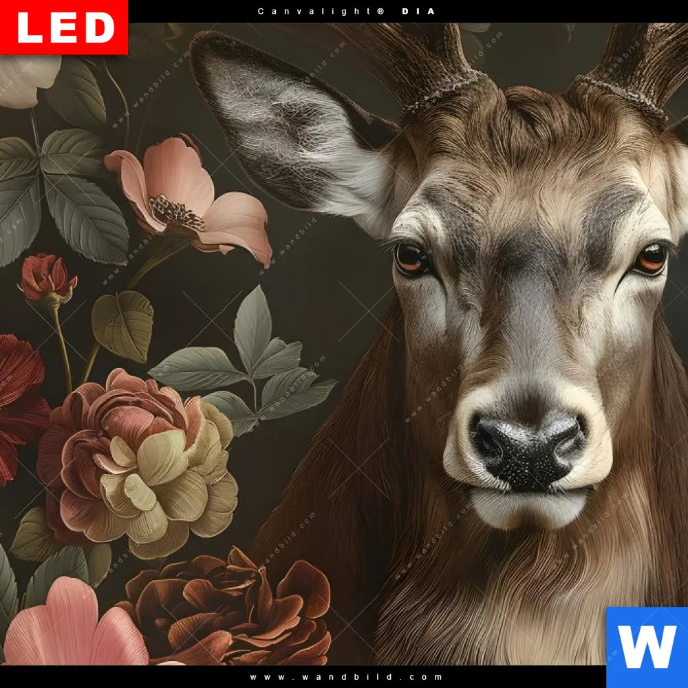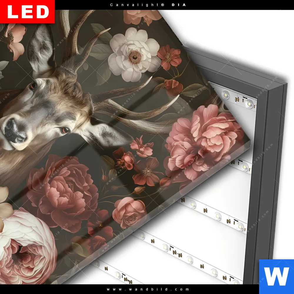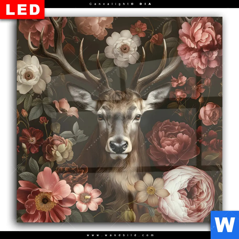 Wechselmotiv Acrylglas Canvalight® DIA | Friedlicher Hirsch und Blüten | Quadrat
