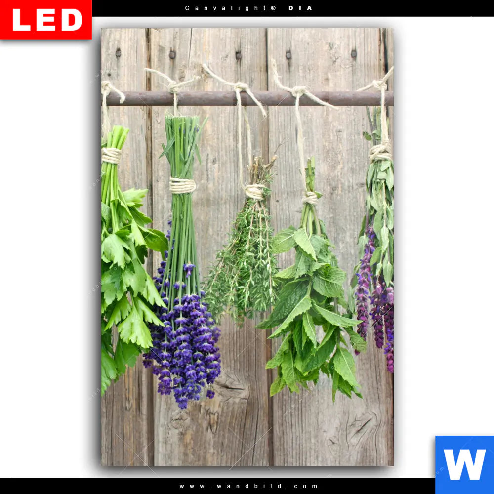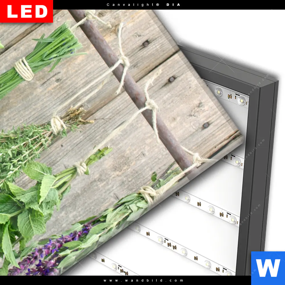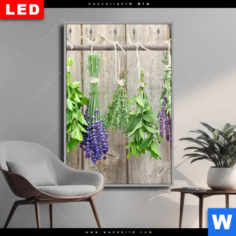 Wechselmotiv Acrylglas Canvalight® DIA | Frische Kräuter an Holzstange | Hochformat