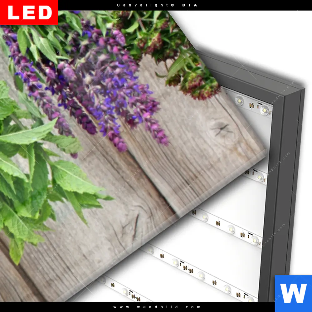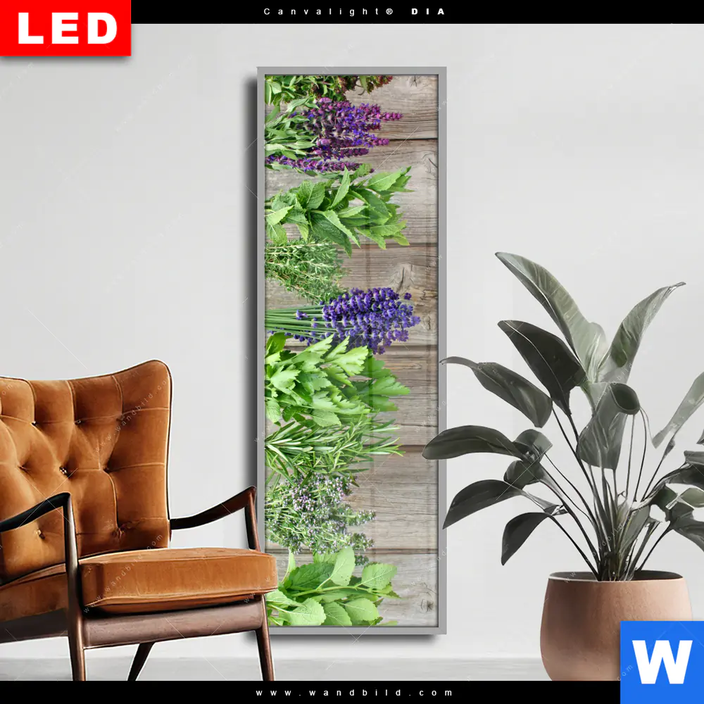 Wechselmotiv Acrylglas Canvalight® DIA | Frische Kräuter an Holzstange | Schmal