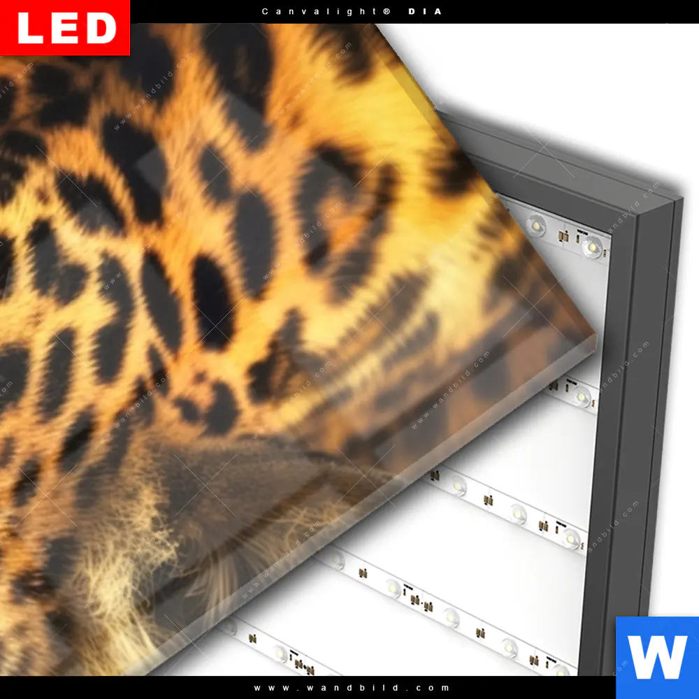 Wechselmotiv Acrylglas Canvalight® DIA | Geheimnisvoller Leopard | Schmal
