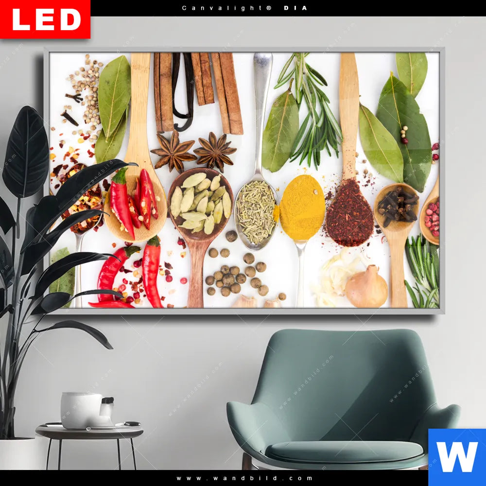 Wechselmotiv Acrylglas Canvalight® DIA | Gewürze auf Löffeln - weiß | Querformat