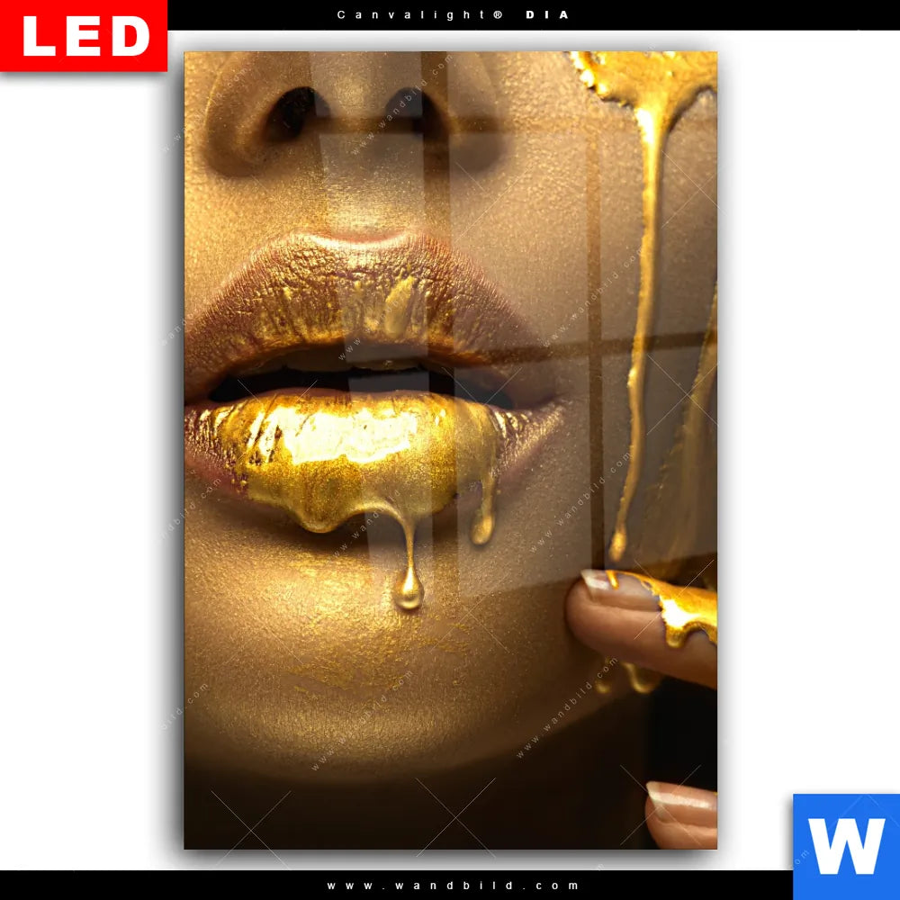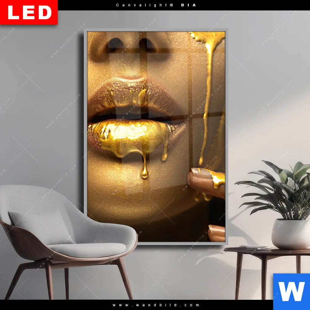 Wechselmotiv Acrylglas Canvalight® DIA | Goldene Lippen | Hochformat