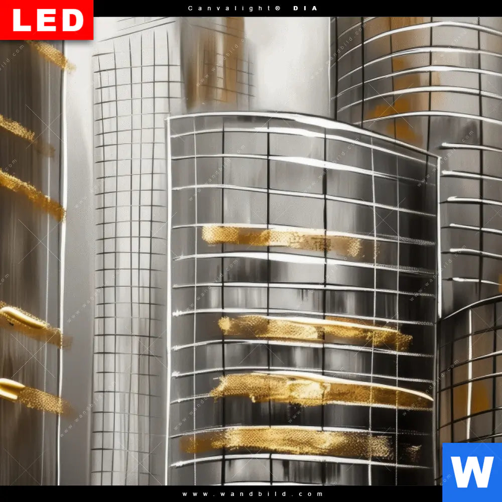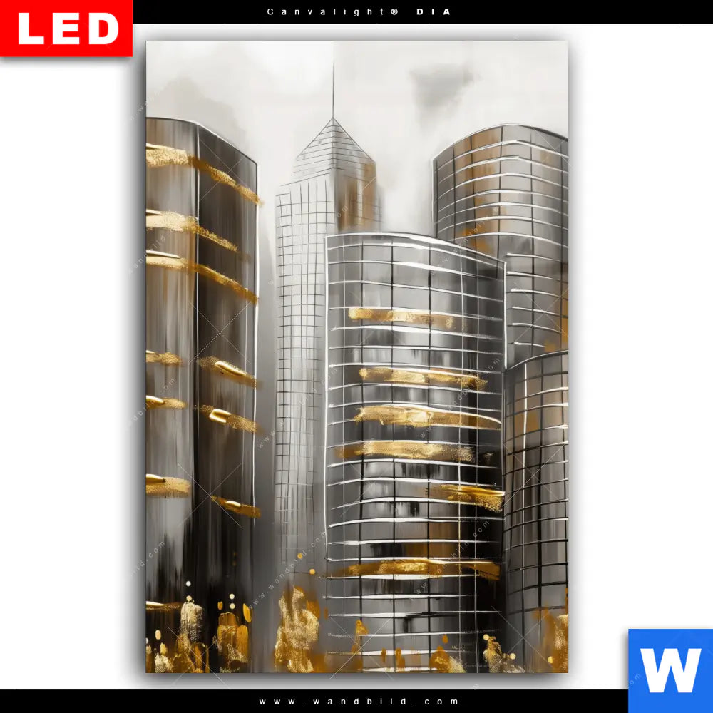 Wechselmotiv Acrylglas Canvalight® DIA | Goldene Skyline Vision | Hochformat