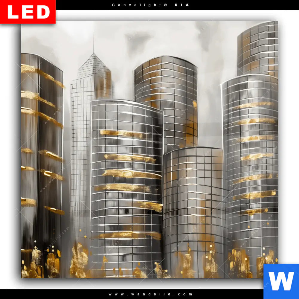 Wechselmotiv Acrylglas Canvalight® DIA | Goldene Skyline Vision | Quadrat