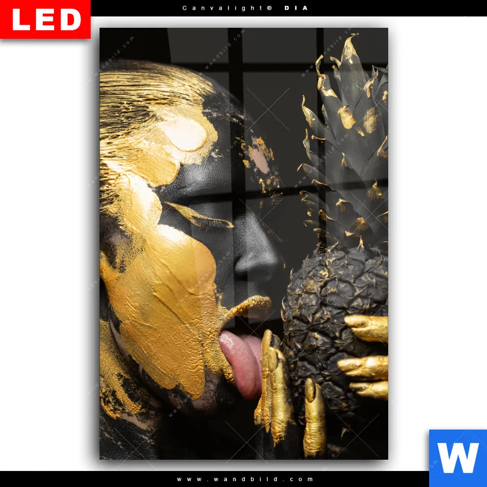 Wechselmotiv Acrylglas Canvalight® DIA | Goldenes Ananasmädchen No.2 | Hochformat