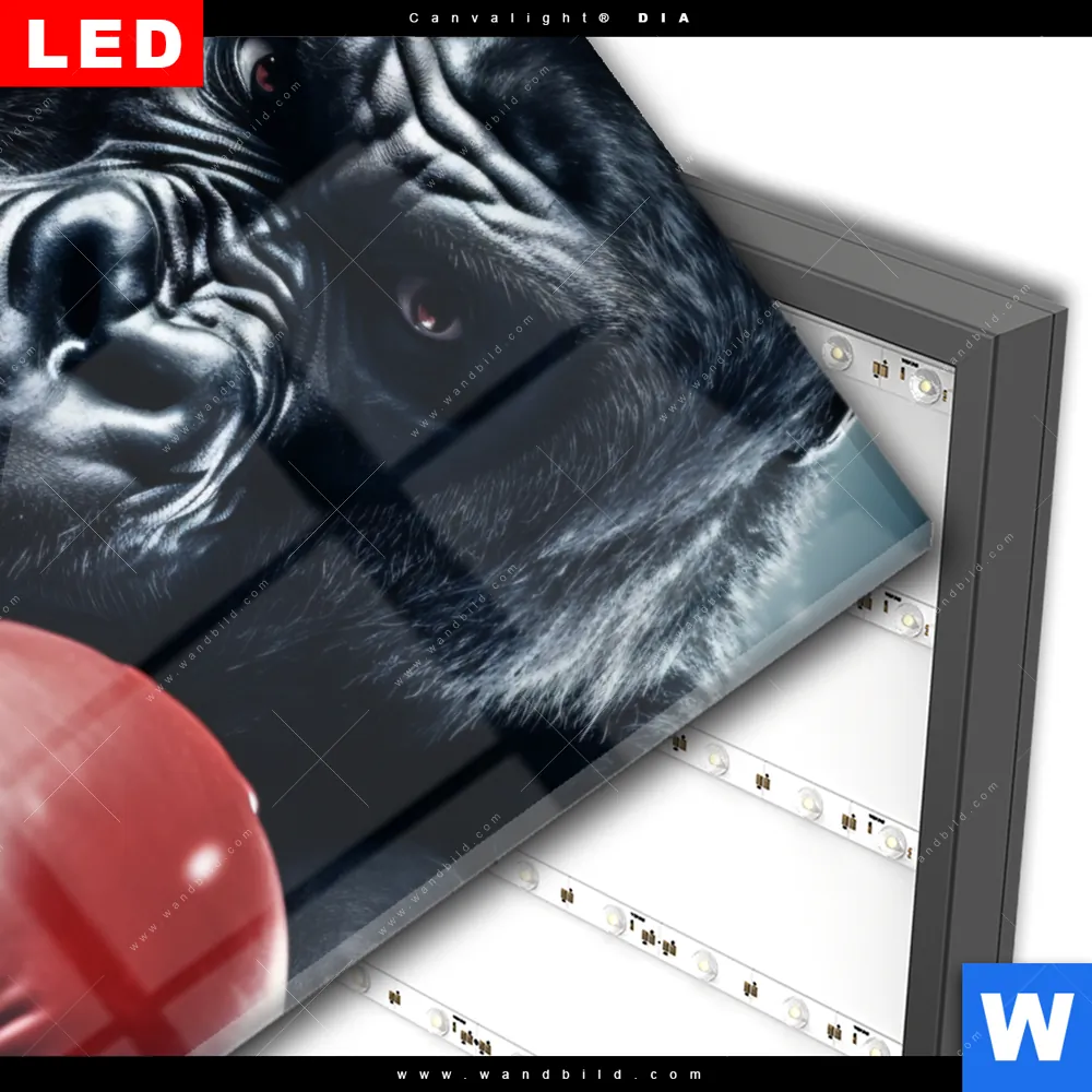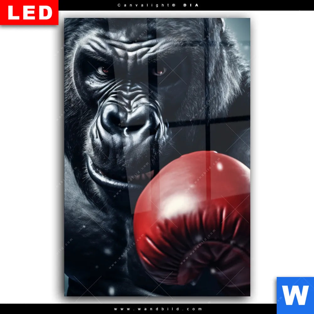 Wechselmotiv Acrylglas Canvalight® DIA | Gorilla mit roten Boxhandschuhen | Hochformat