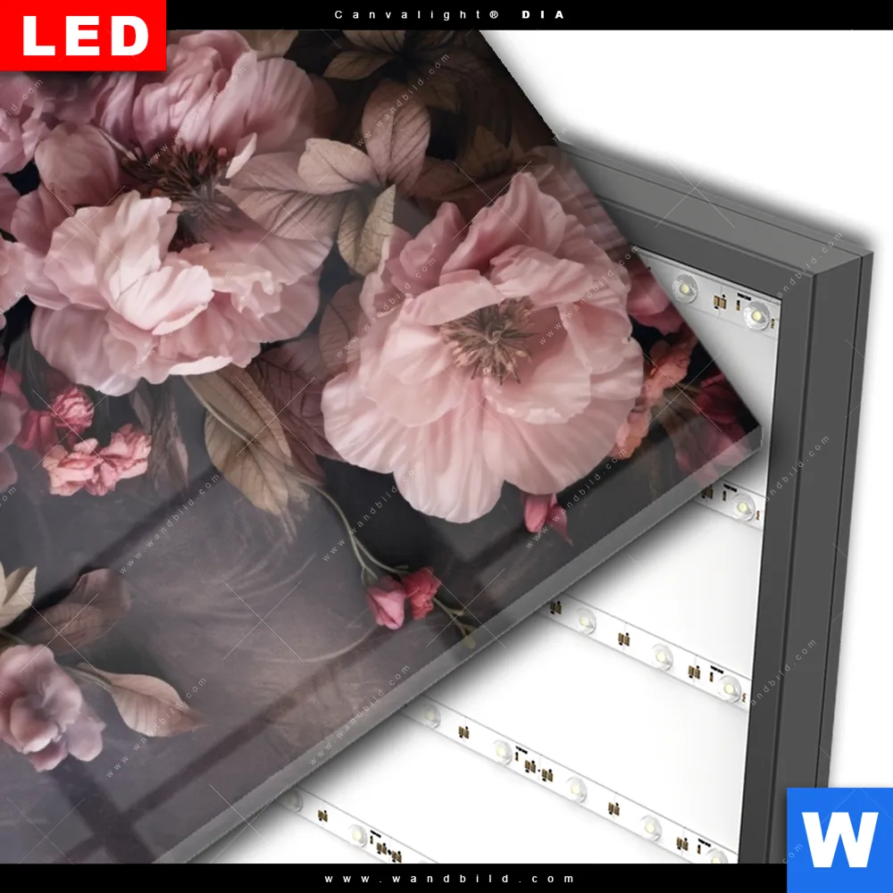 Wechselmotiv Acrylglas Canvalight® DIA | Hellrosa Blumen | Hochformat