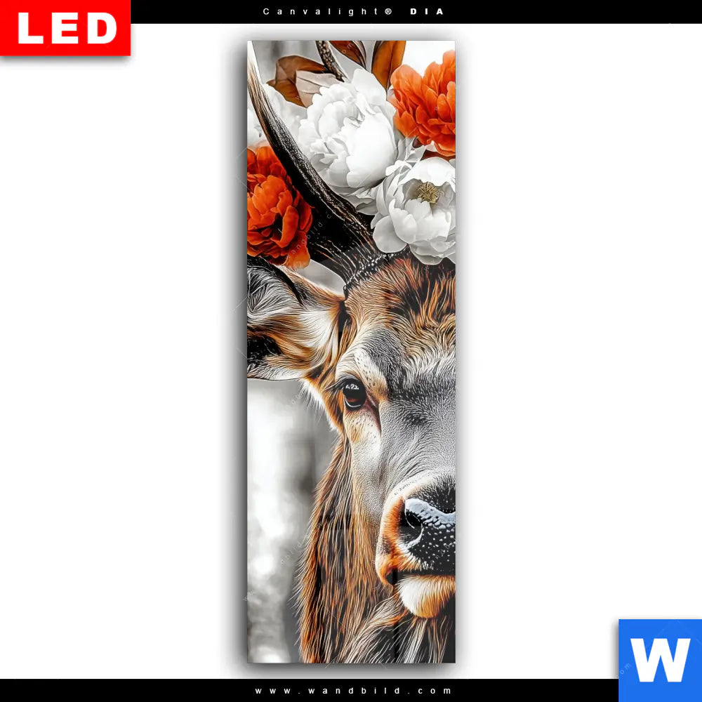 Wechselmotiv Acrylglas Canvalight® DIA | Hirsch mit Blumenkrone | Schmal
