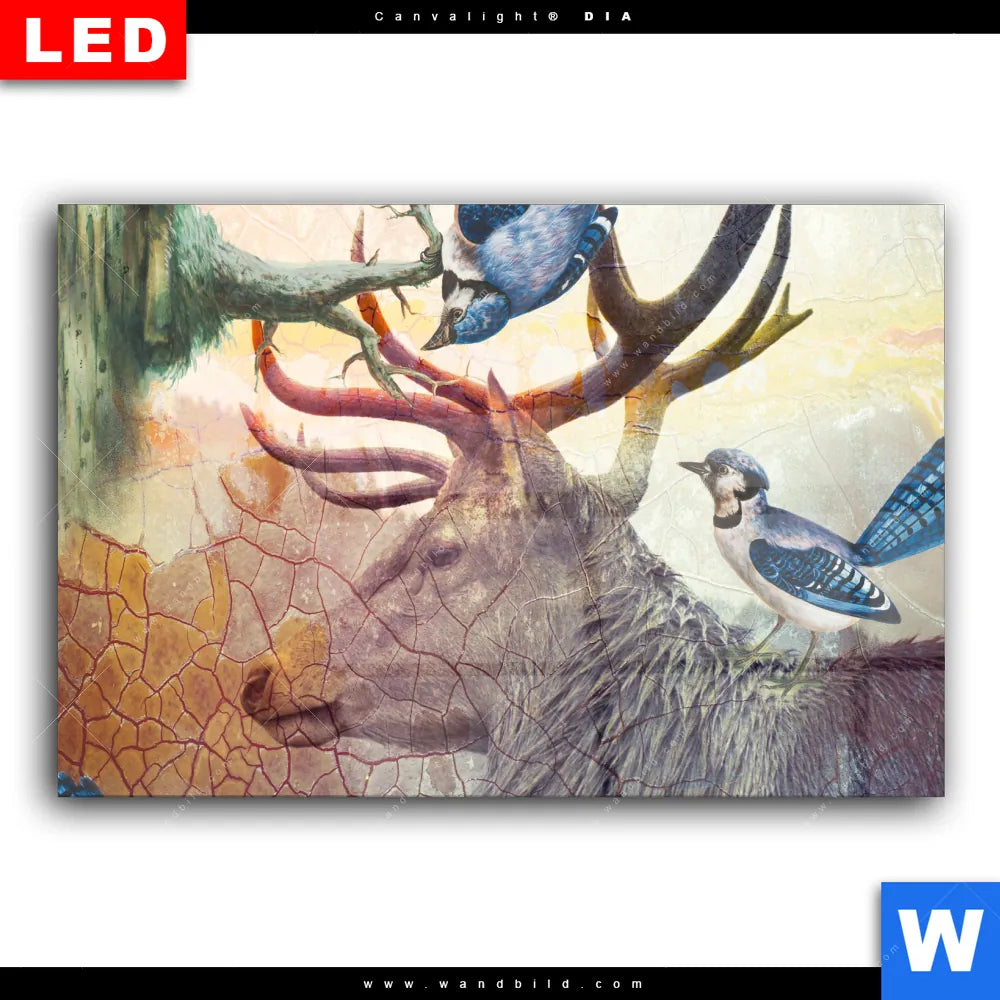 Wechselmotiv Acrylglas Canvalight® DIA | Hirsch & Vögel | Querformat