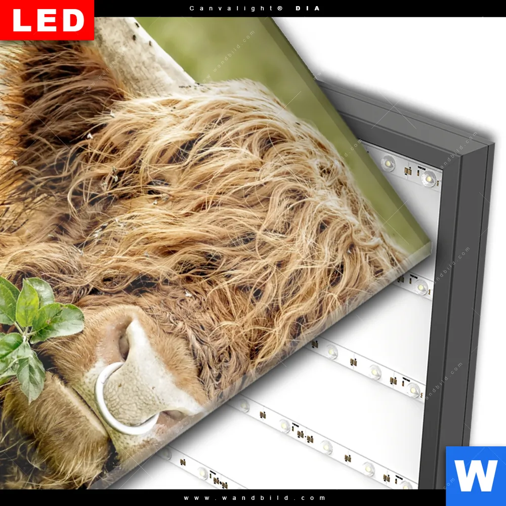 Wechselmotiv Acrylglas Canvalight® DIA | Hochland-Rind mit Nasenring | Hochformat