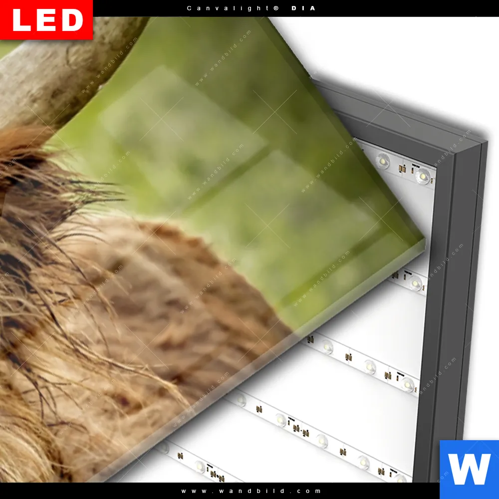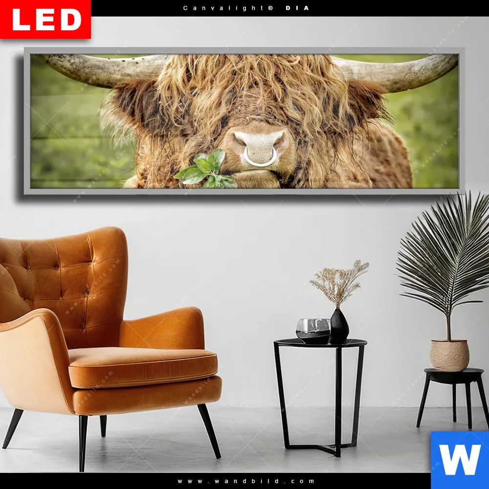 Wechselmotiv Acrylglas Canvalight® DIA | Hochland-Rind mit Nasenring | Panorama