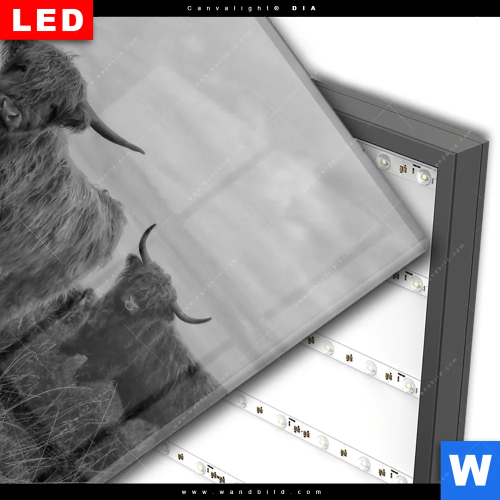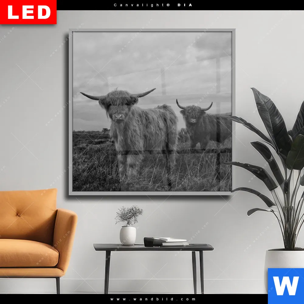 Wechselmotiv Acrylglas Canvalight® DIA | Hochland-Rind Schwarz-Weiß | Quadrat