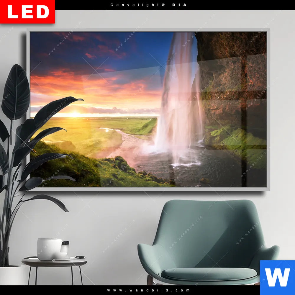 Wechselmotiv Acrylglas Canvalight® DIA | Isländischer Wasserfall | Querformat