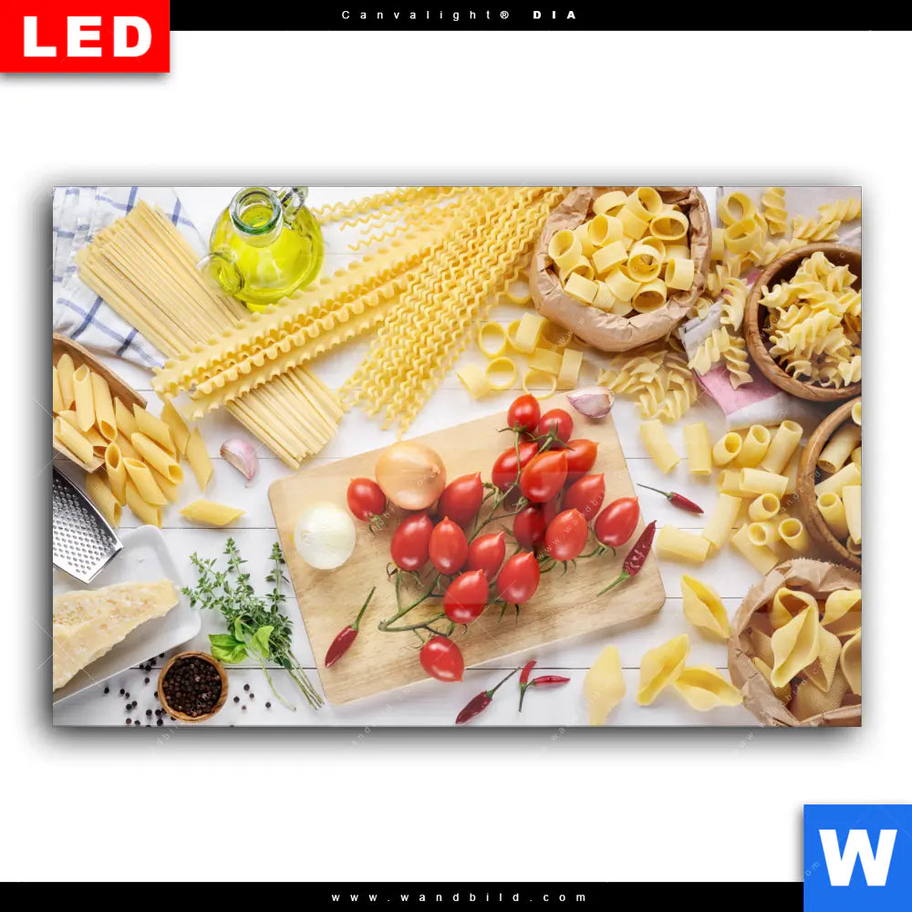 Wechselmotiv Acrylglas Canvalight® DIA | Italienische Pasta Vielfalt | Querformat