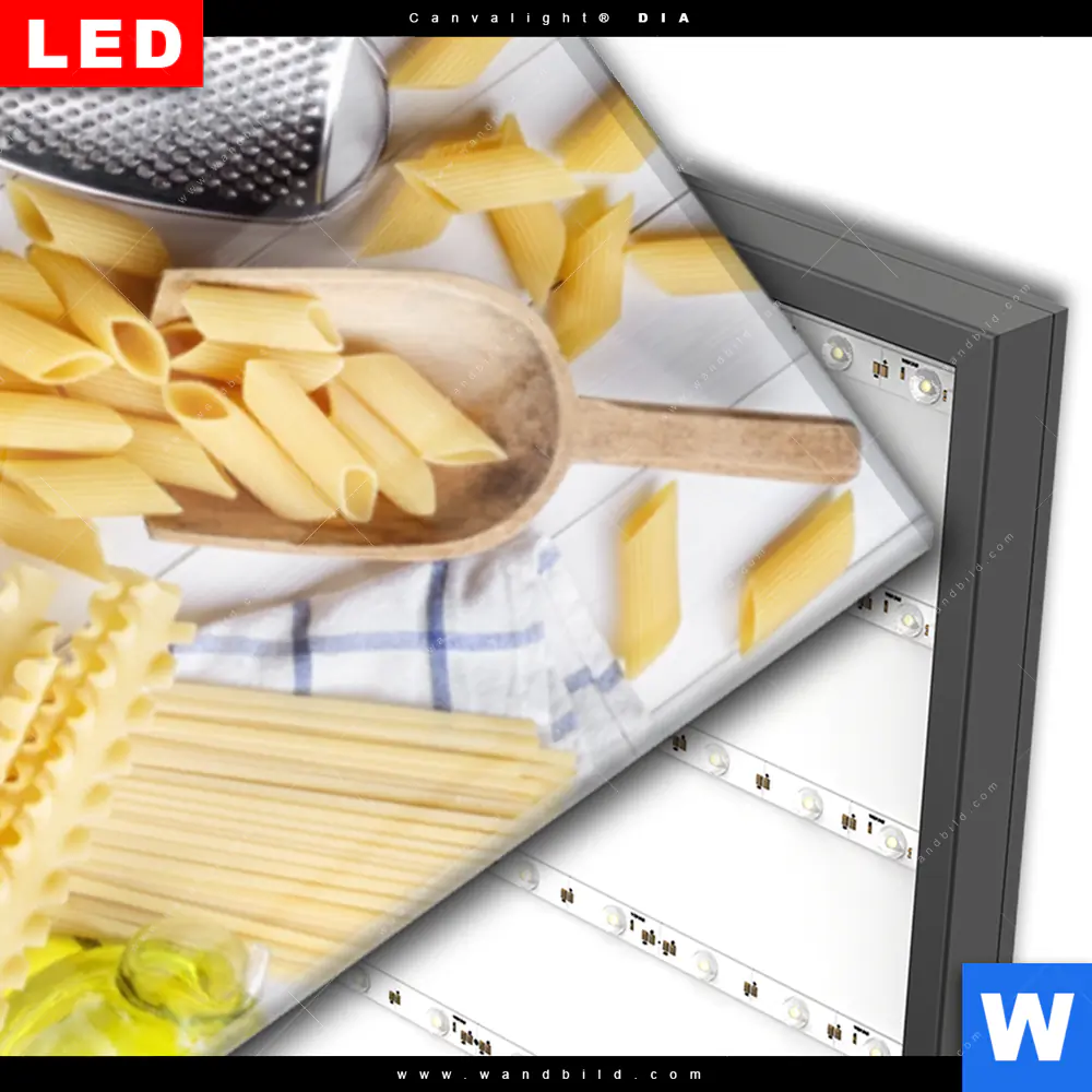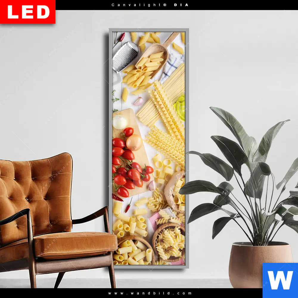 Wechselmotiv Acrylglas Canvalight® DIA | Italienische Pasta Vielfalt | Schmal