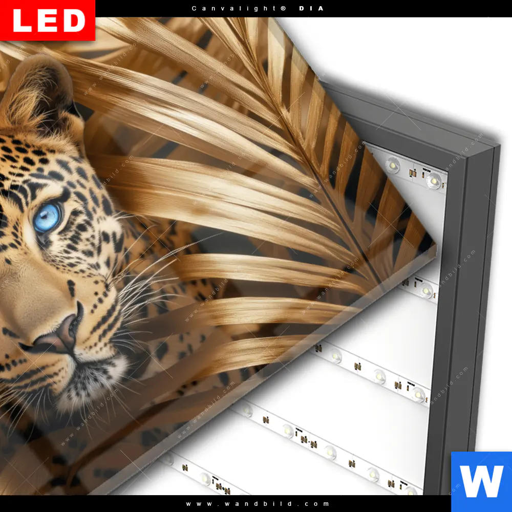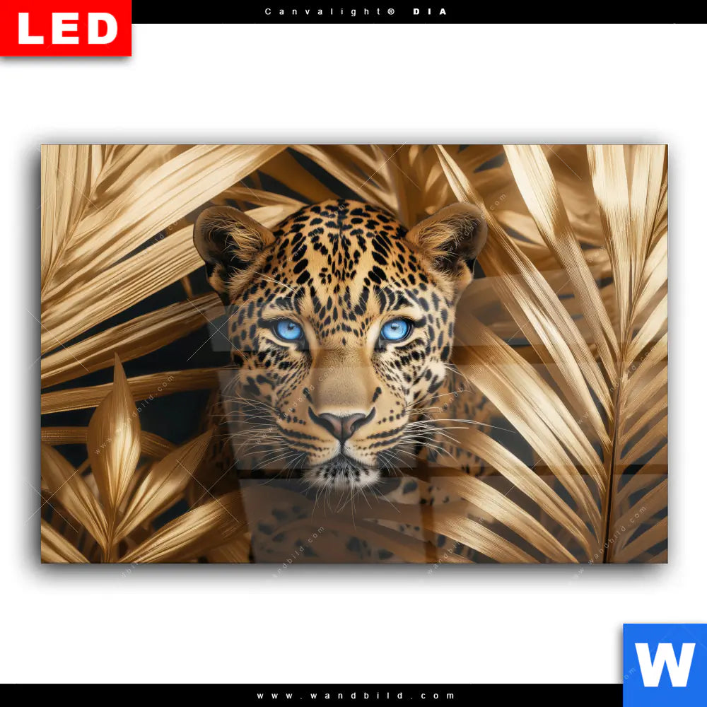 Wechselmotiv Acrylglas Canvalight® DIA | Leopard im goldenen Dschungel | Querformat