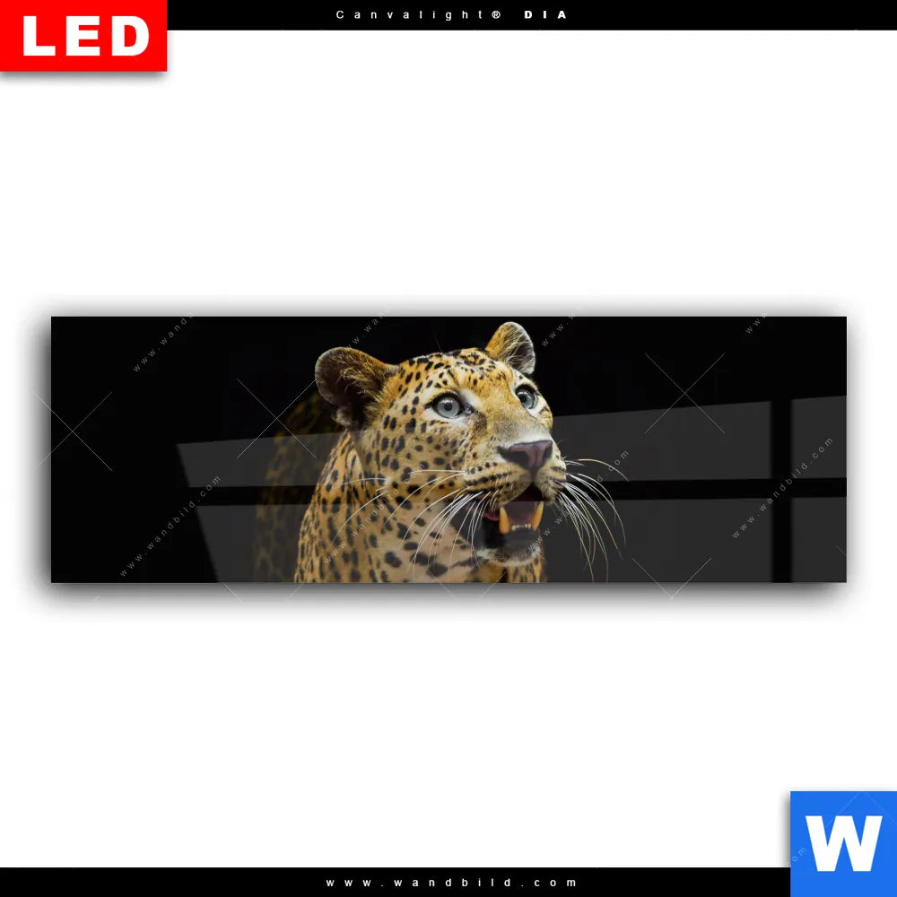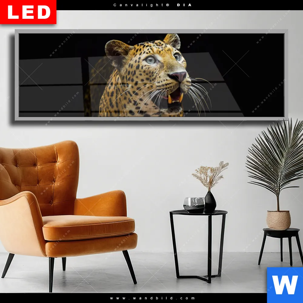 Wechselmotiv Acrylglas Canvalight® DIA | Leopard in der Dunkelheit | Panorama