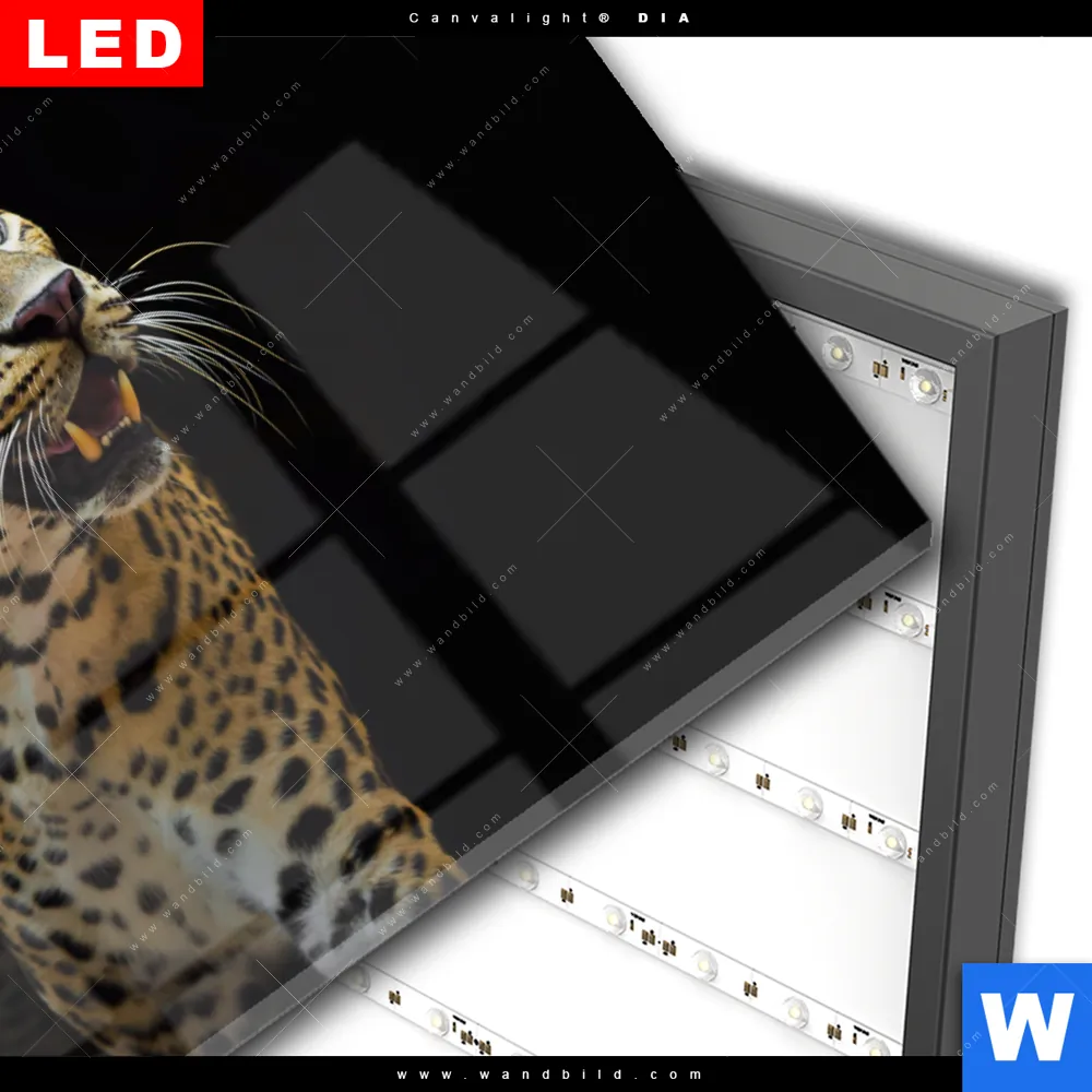Wechselmotiv Acrylglas Canvalight® DIA | Leopard in der Dunkelheit | Querformat