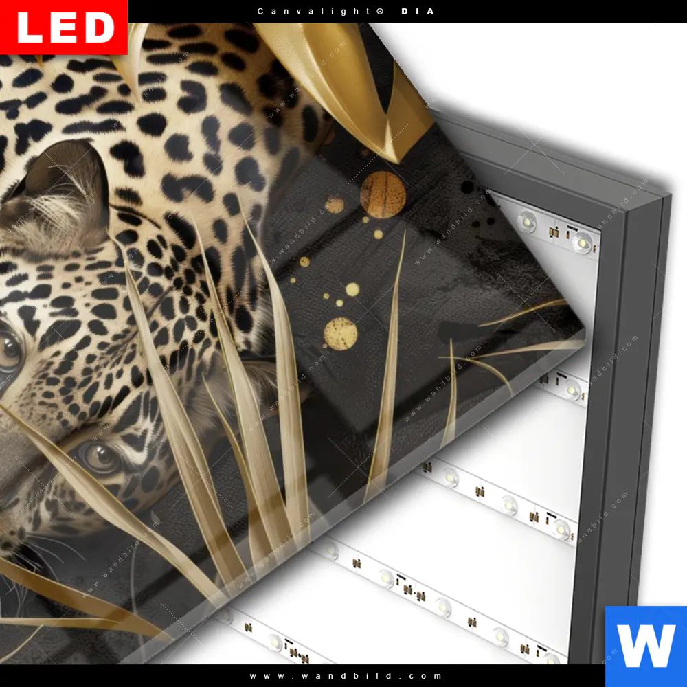 Wechselmotiv Acrylglas Canvalight® DIA | Leopard in goldener Tarnung | Hochformat