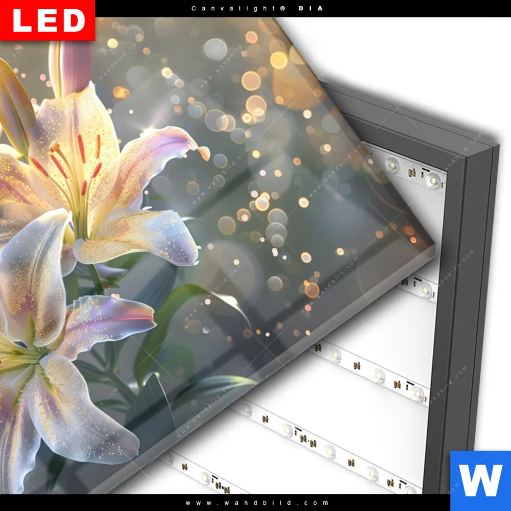 Wechselmotiv Acrylglas Canvalight® DIA | Lilien im Morgenlicht | Querformat