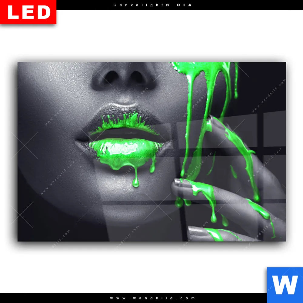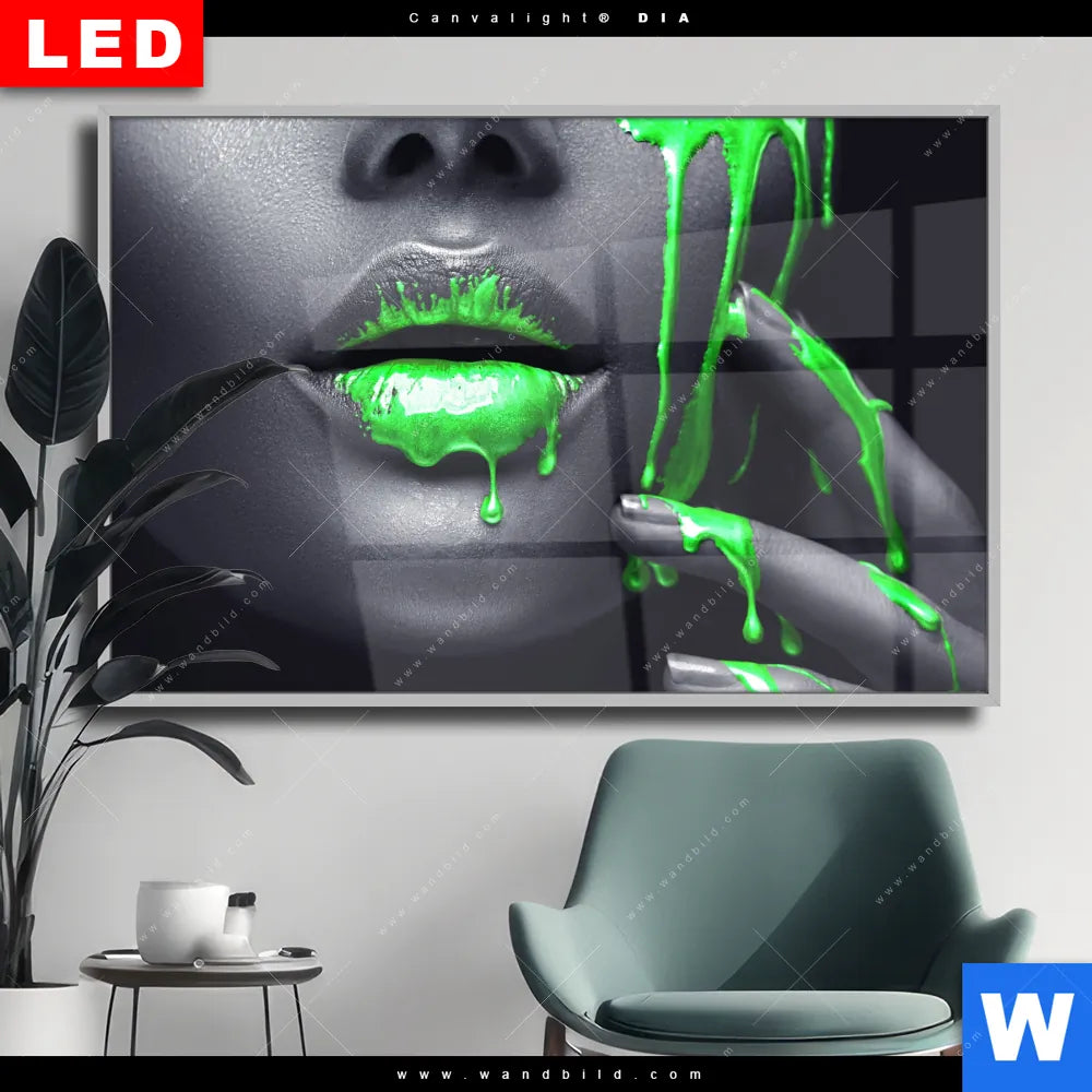 Wechselmotiv Acrylglas Canvalight® DIA | Lippen Silber & Grün | Querformat