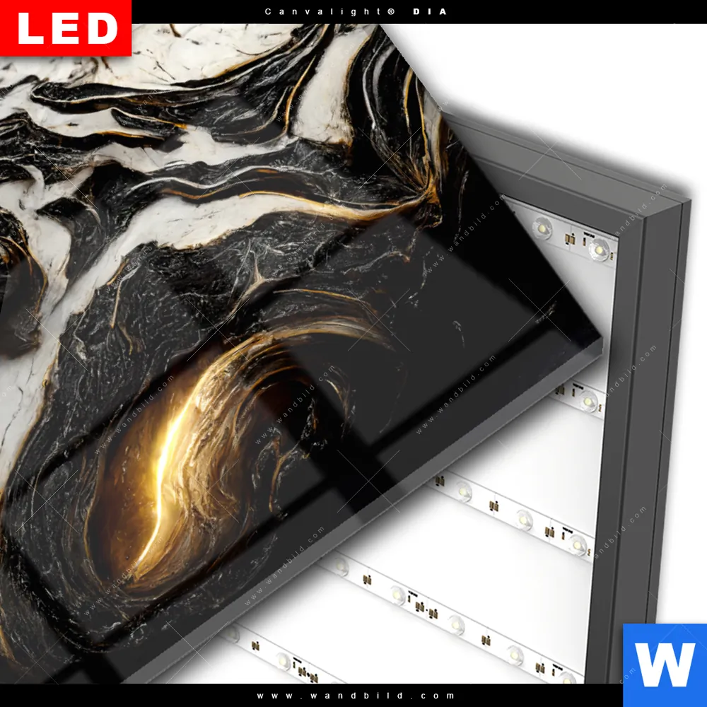 Wechselmotiv Acrylglas Canvalight® DIA | Liquid Marmor Schwarz Gold | Querformat