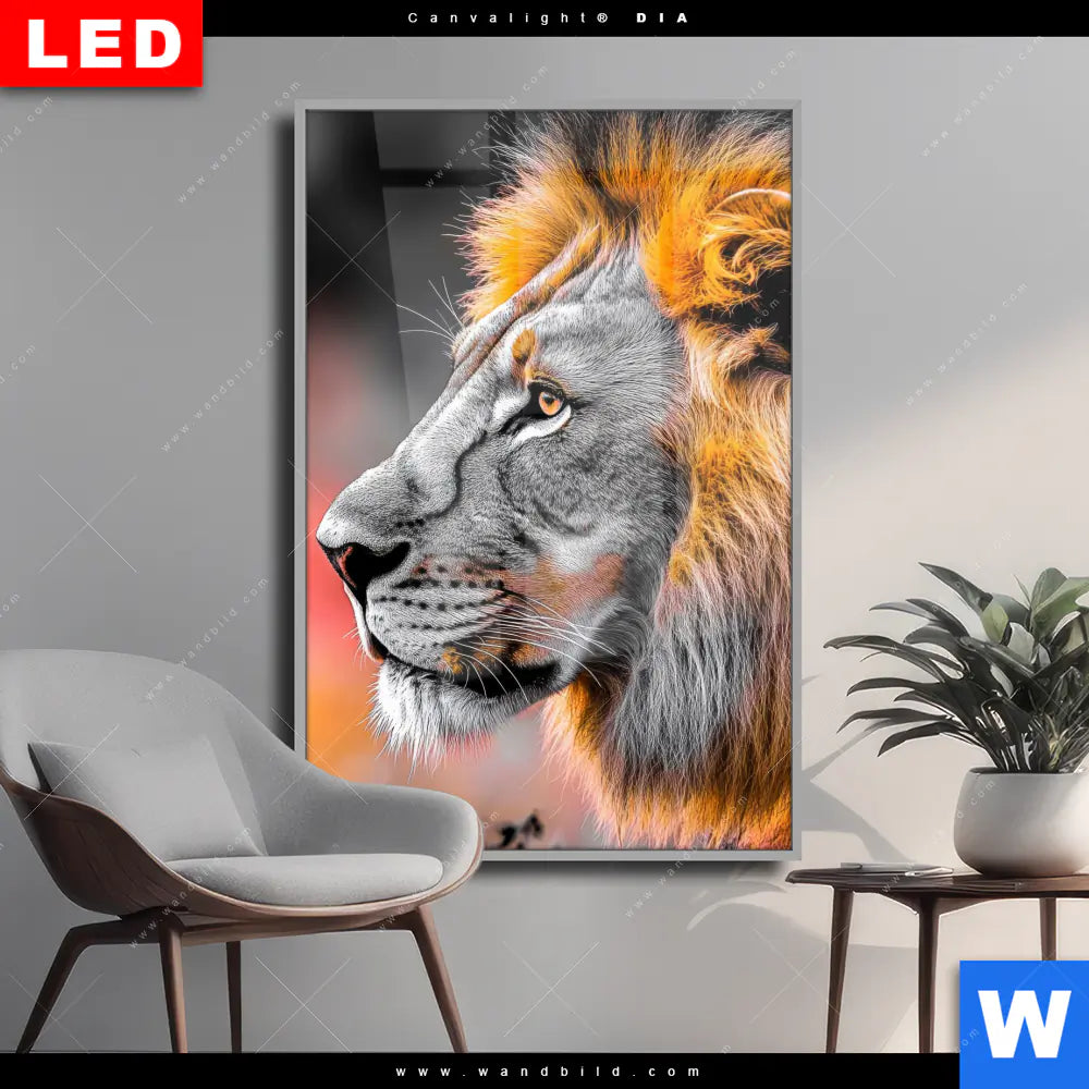 Wechselmotiv Acrylglas Canvalight® DIA | Löwe - Savannenzauber in Afrika | Hochformat