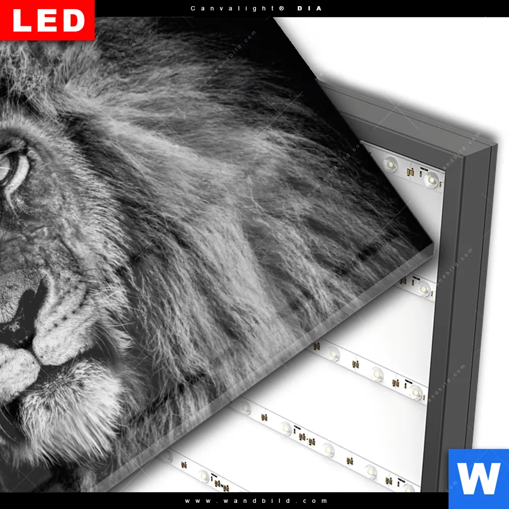 Wechselmotiv Acrylglas Canvalight® DIA | Löwe Schwarzweiß | Querformat