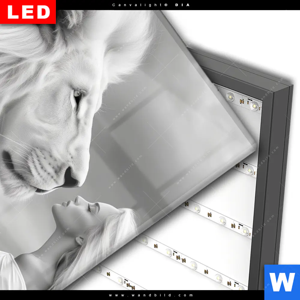 Wechselmotiv Acrylglas Canvalight® DIA | Löwe - Wildnis Liebe | Hochformat